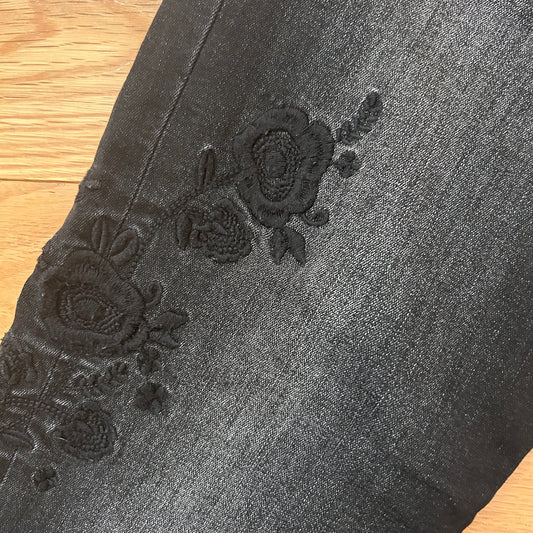 KUT from the Kloth Black Skinny Jeans Black Floral Embroidery Womens Size 8