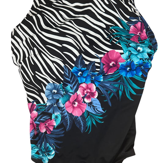 Longitude Black Pink Blue One Piece Bathing Suit Womens Size 8 NWT $129