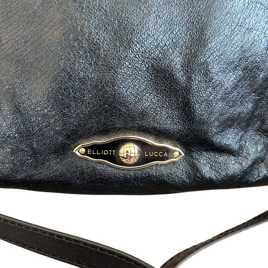 Elliott Lucca Black Leather Shoulder Bag Braided Handle Crossbody