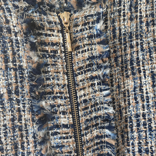 J. McLaughlin Navy Blue and Gold Tweed Fringed Walden Coat Size XLVendor:J. McLaughlinRegular price $95.00 USDRegular priceUnit price / per-