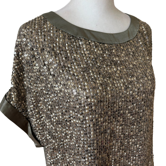Carlisle Taupe Silk Boxy Short Sleeve Sequined Top Womens Size 10Vendor:CarlisleRegular price $40.00 USDRegular priceUnit price / per-