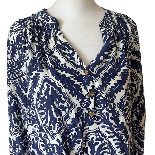 Lilly Pulitzer Elsa Silk Top Navy Blue and White Coral Design Beachy Size SmallVendor:Lilly PulitzerRegular price $40.00 USDRegular priceUnit price / per-