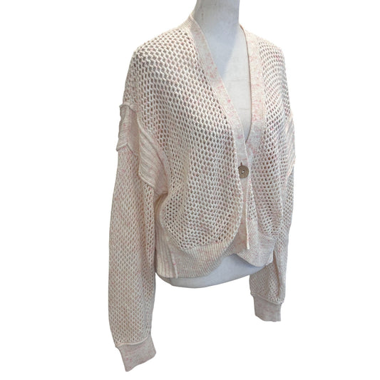 Pilcro Pink Open Weave Boxy Long Sleeve Cardigan Sweater Womens Size Medium