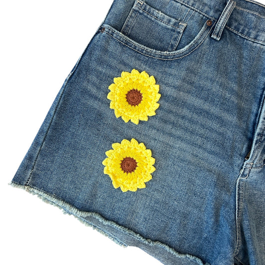 Circus NY Sam Edelman High Rise Denim Short Embroidered Sunflower Womens Size 31