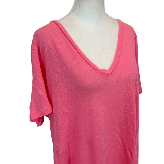 Vineyard Vines Pink 100% linen Short Sleeve V-Neck Tee Shirt Womens Size XL