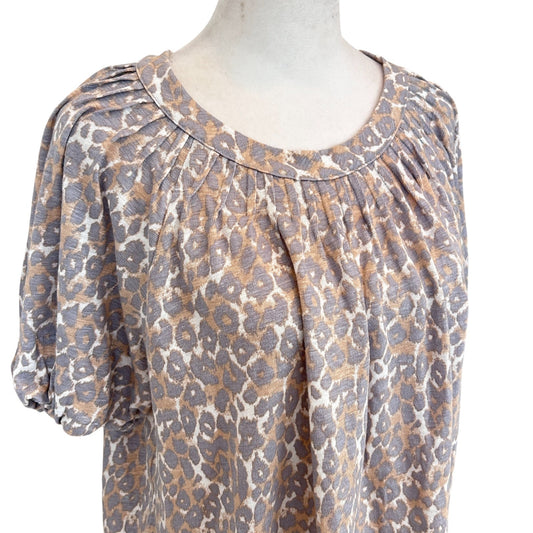 Maeve Anthropologie Gray, Tan Cheetah Short Sleeve Linen Top Womens Size Medium