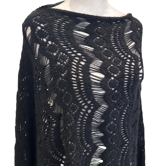 Do Everything In Love Black Crocheted and Fringed Poncho One Size