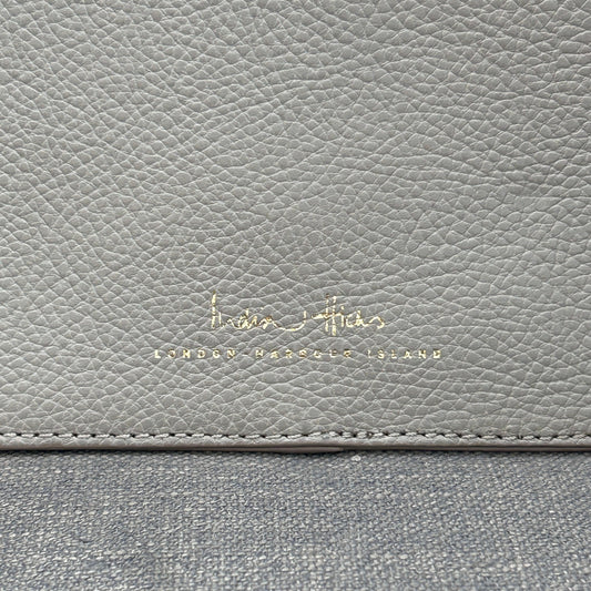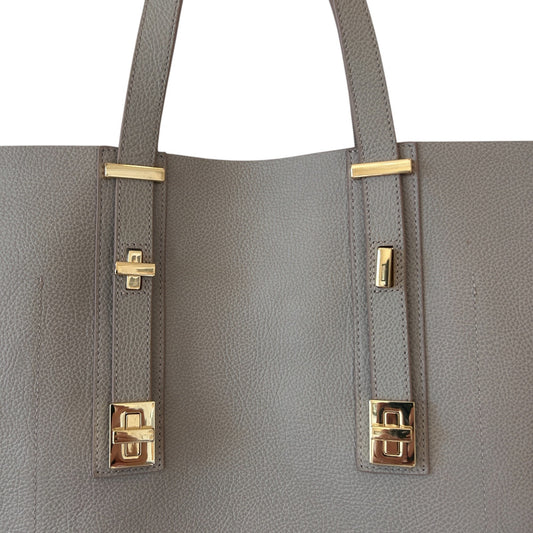 India Hicks Taupe Pebbled Leather Shoulder Tote Bag Gold Accents