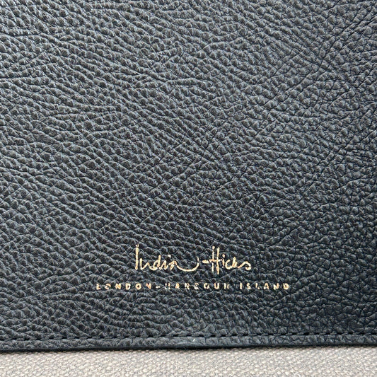 India Hicks Black Big Zipper Pebbled Leather Clutch Bag