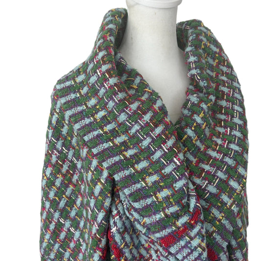 Anthropologie Green, Blue, Purple Plaid Knit Fringed Wrap Scarf One Size NEW