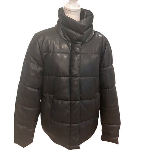 Avec Les Filles Black Faux Leather Quilted Puffer Jacket Womens Size Large