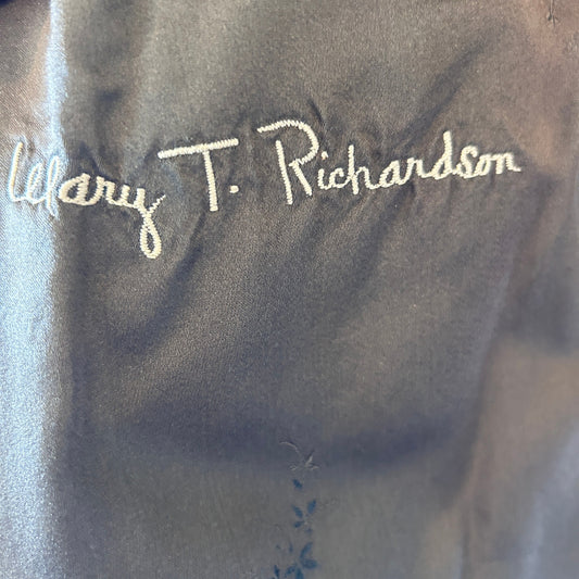 J. McLaughlin Navy Blue and Gold Tweed Fringed Walden Coat Size XL