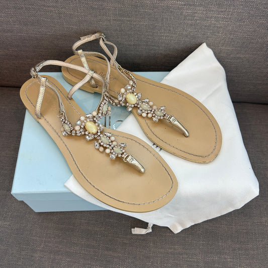 Bella Belle Tulum Gold Strappy Embellished Sandal Bridal Womens Size 8