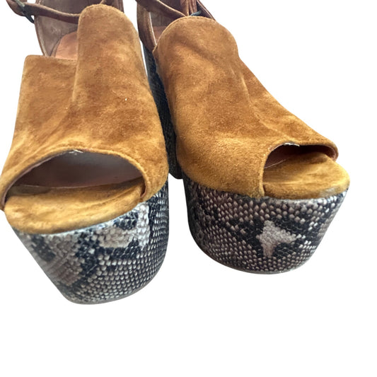 Jeffrey Campbell Studio Tan Open Toe Platform Heel Snakeskin Womens Size 8.5