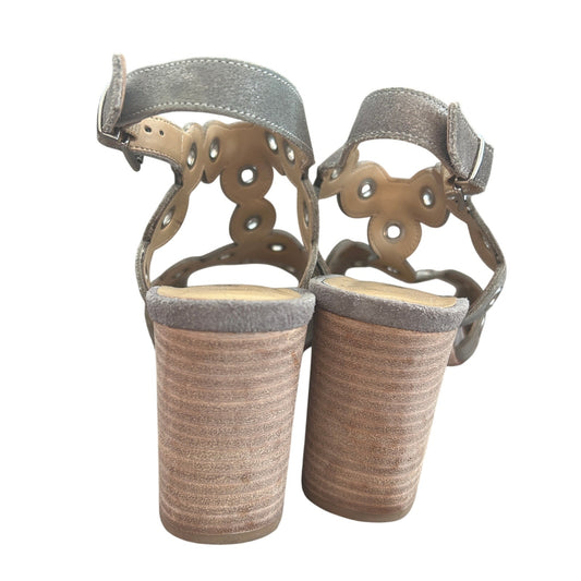 VANELi Berton Taupe Rory Chunky Heel Ankle Strap Scalloped Shoes Womens Size 8
