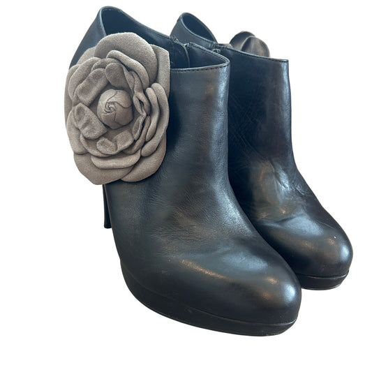 Kelsi Dagger Rosabella Black Grey Leather Heeled Platform Boots Womens Size 8.5