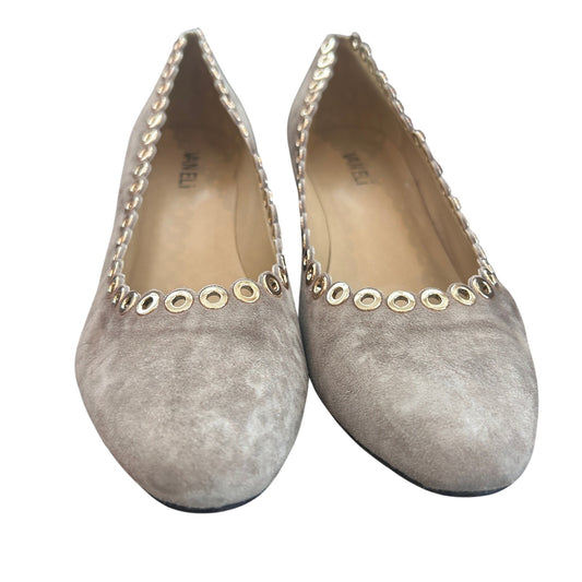 VANELi Deana Truffle Suede Brown Gold Metal Eyelet Trim Wedges Womens Size 8.5