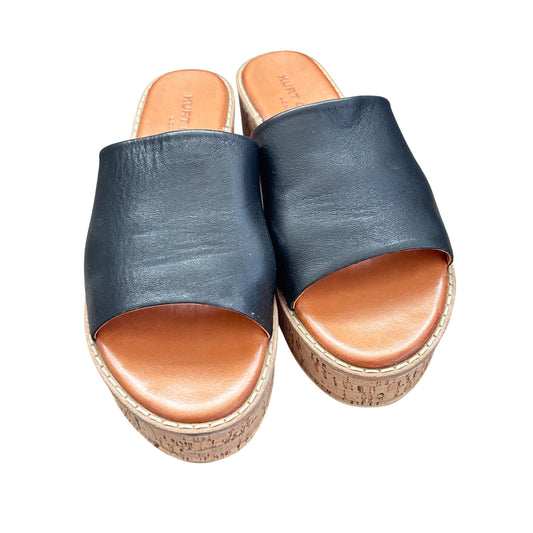 Kurt Geiger Maci Black Leather Cork Heel Platform Slide Sandals Womens Size 7