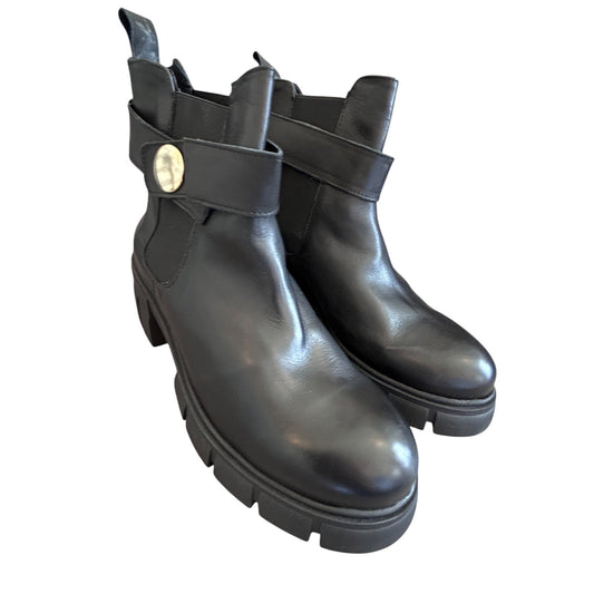 Napoleoni Black Lace Up Zipper Leather Combat Ankle Boots 41 Women's Size 11 US