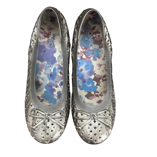 Vionic Spark Surin Pewter / Silver Leather Ballet Flats Womens Size 8
