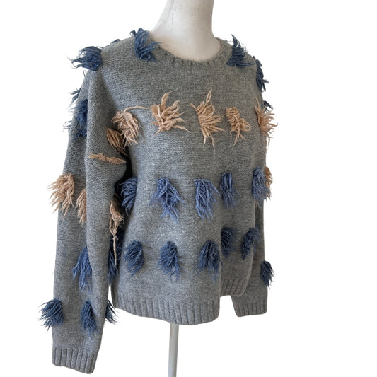 THML Gray, Blue, Tan Fringed Long Sleeve Pullover Sweater Womens Size Small