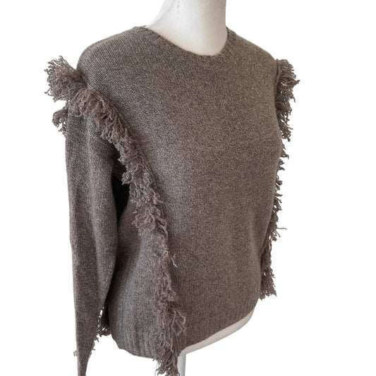 Aqua Cashmere Taupe Fringed Pullover Cashmere Sweater Womens Size XS