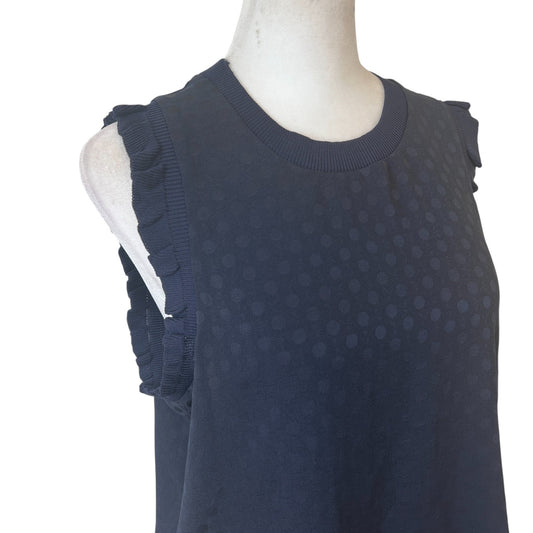 Current Air Navy Blue Polka Dot Ruffle Trim Sleeveless Top Womens Size Small NEW