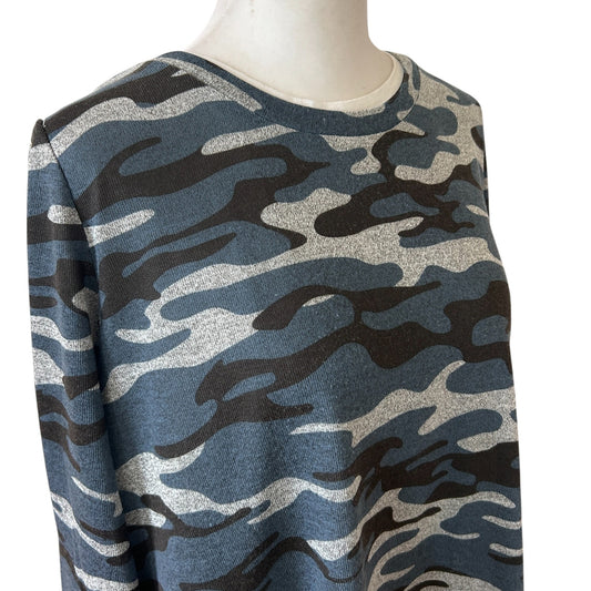 Elliott Lauren Blue Camo Long Sleeve Tunic Top 100% Cotton Womens Size Small
