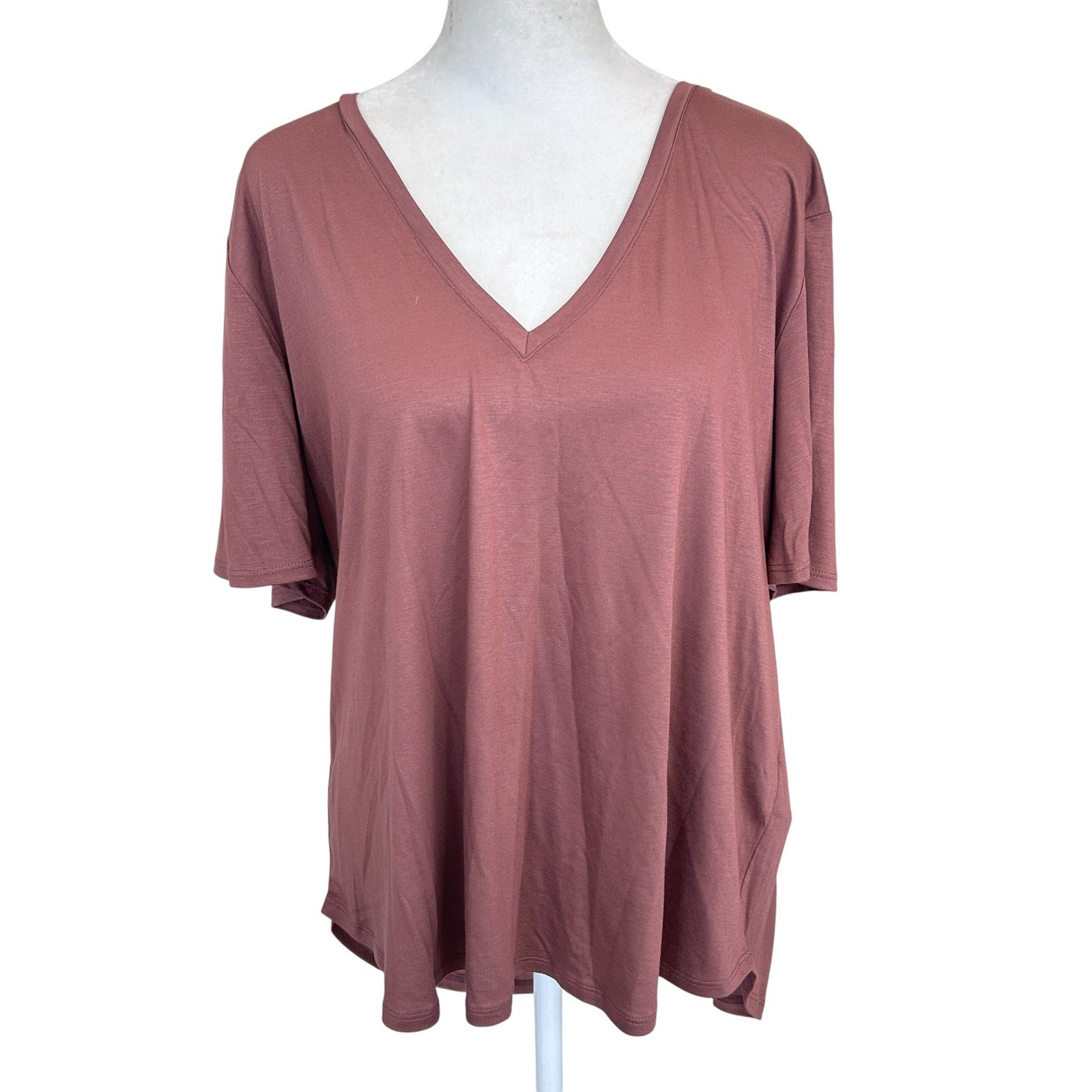 Anthropologie Chocolate Brown V-Neck Tunic Tee Shirt Top Womens Size Large