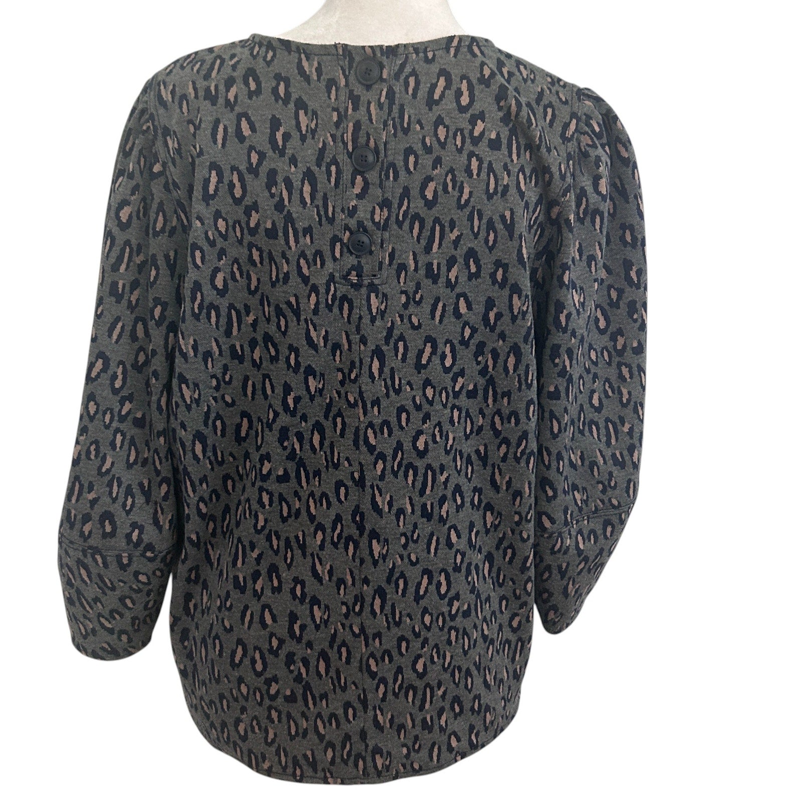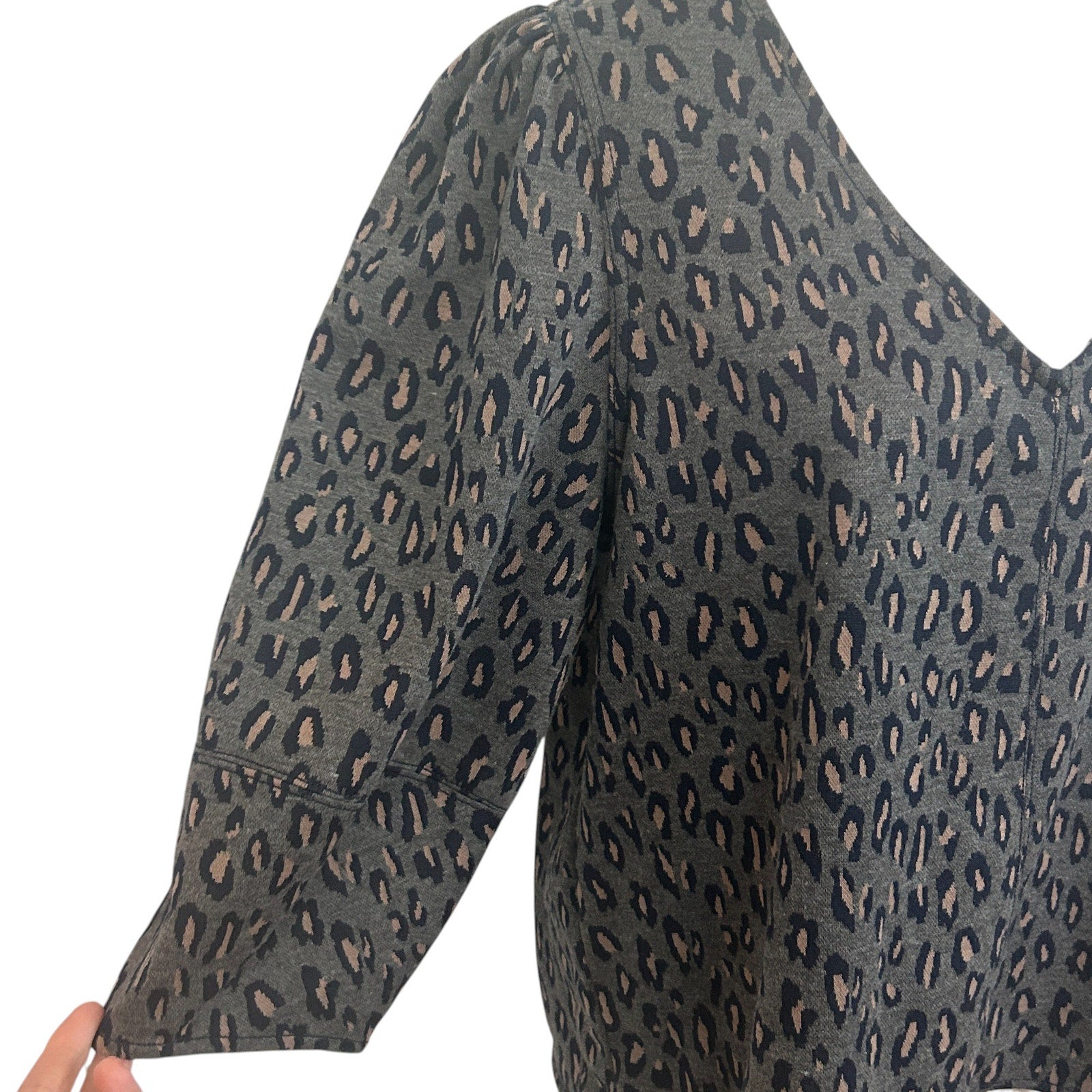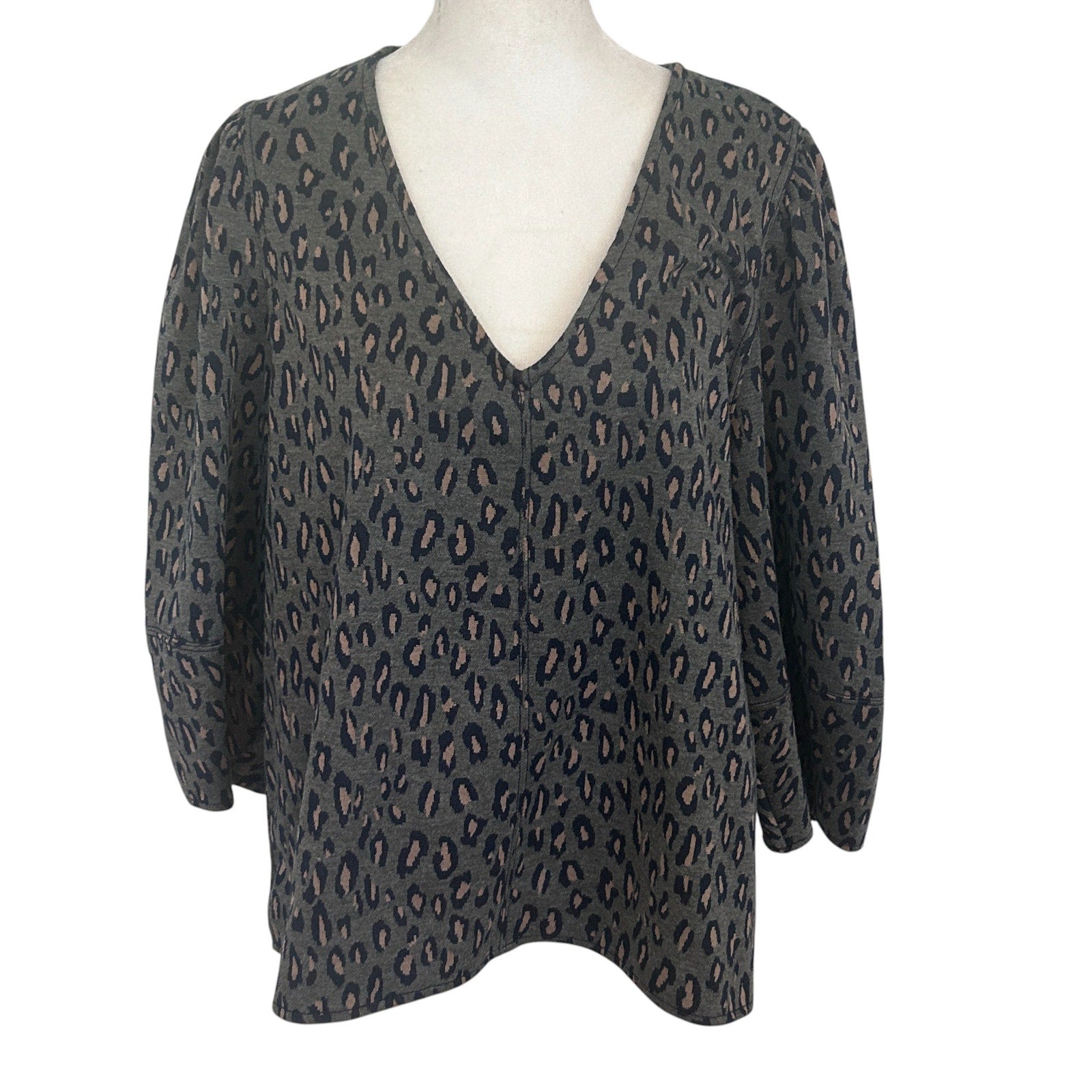 Anthropologie Current Air Gray Animal Print V-Neck Knit Top Womens Size Large