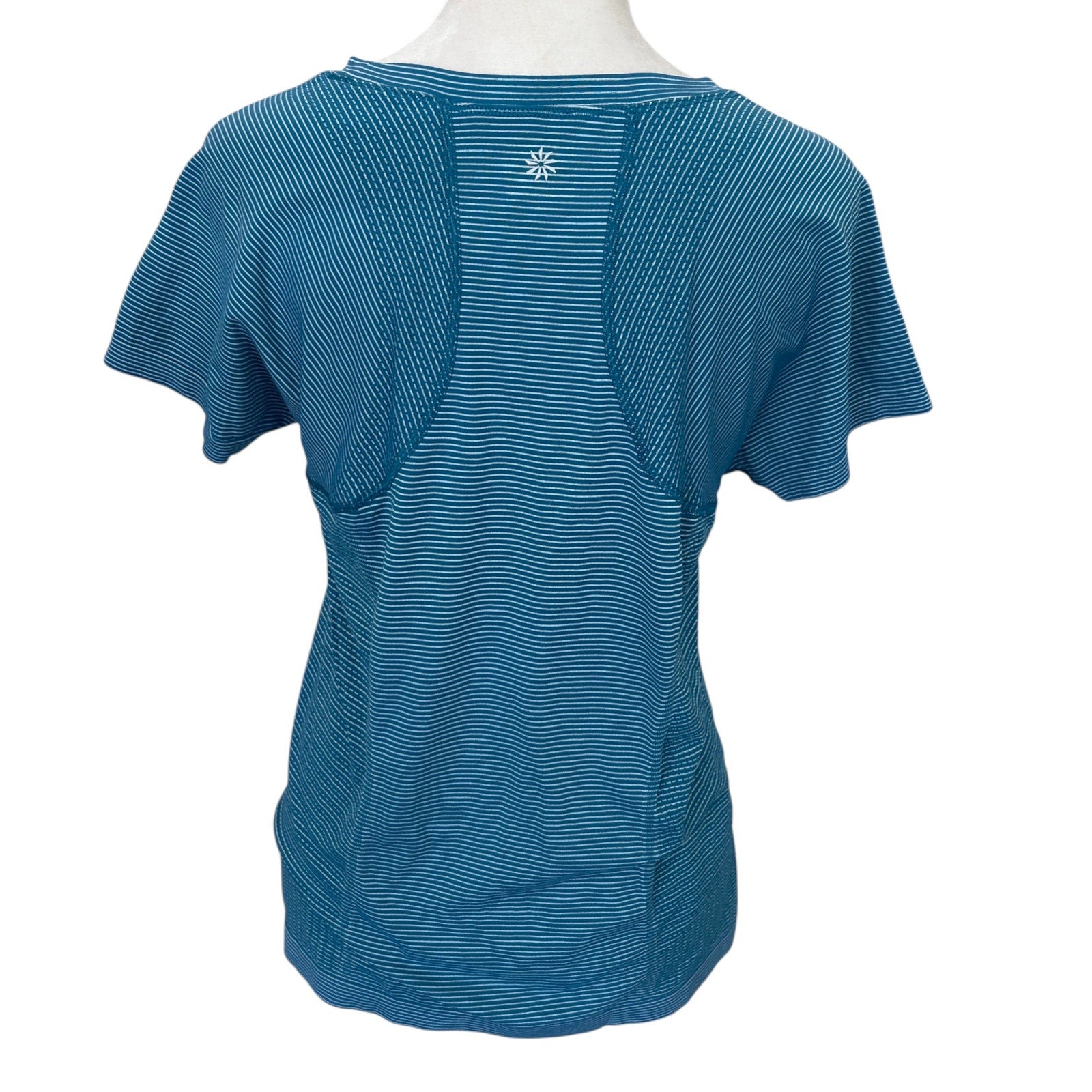 Athleta Teal Mini Stripe Momentum Seamless Short Sleeve Tee Womens Size Medium