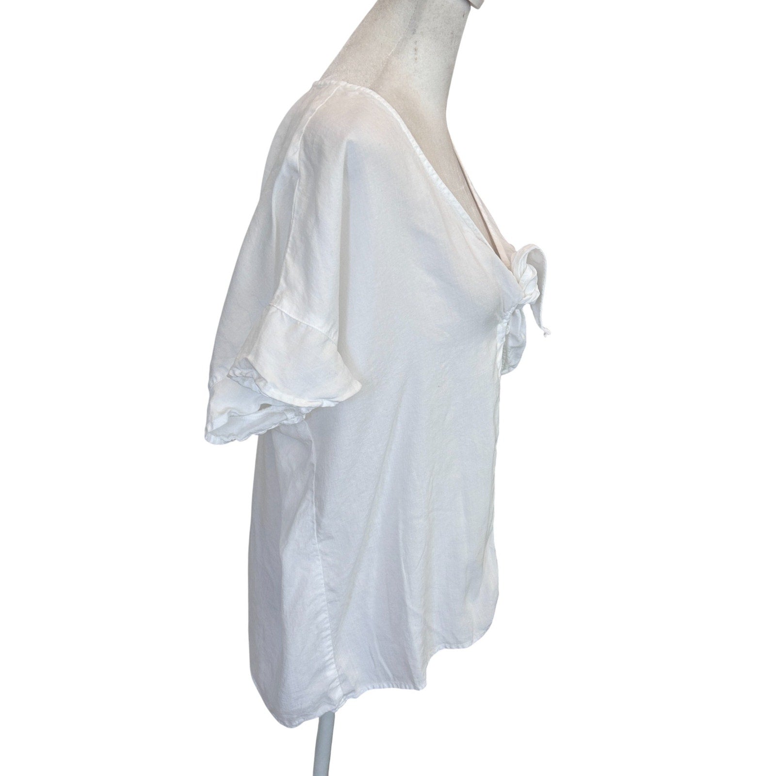 Cloth & Stone Anthro White Flutter Sleeve V-Neck Blouse Womens Size Medium