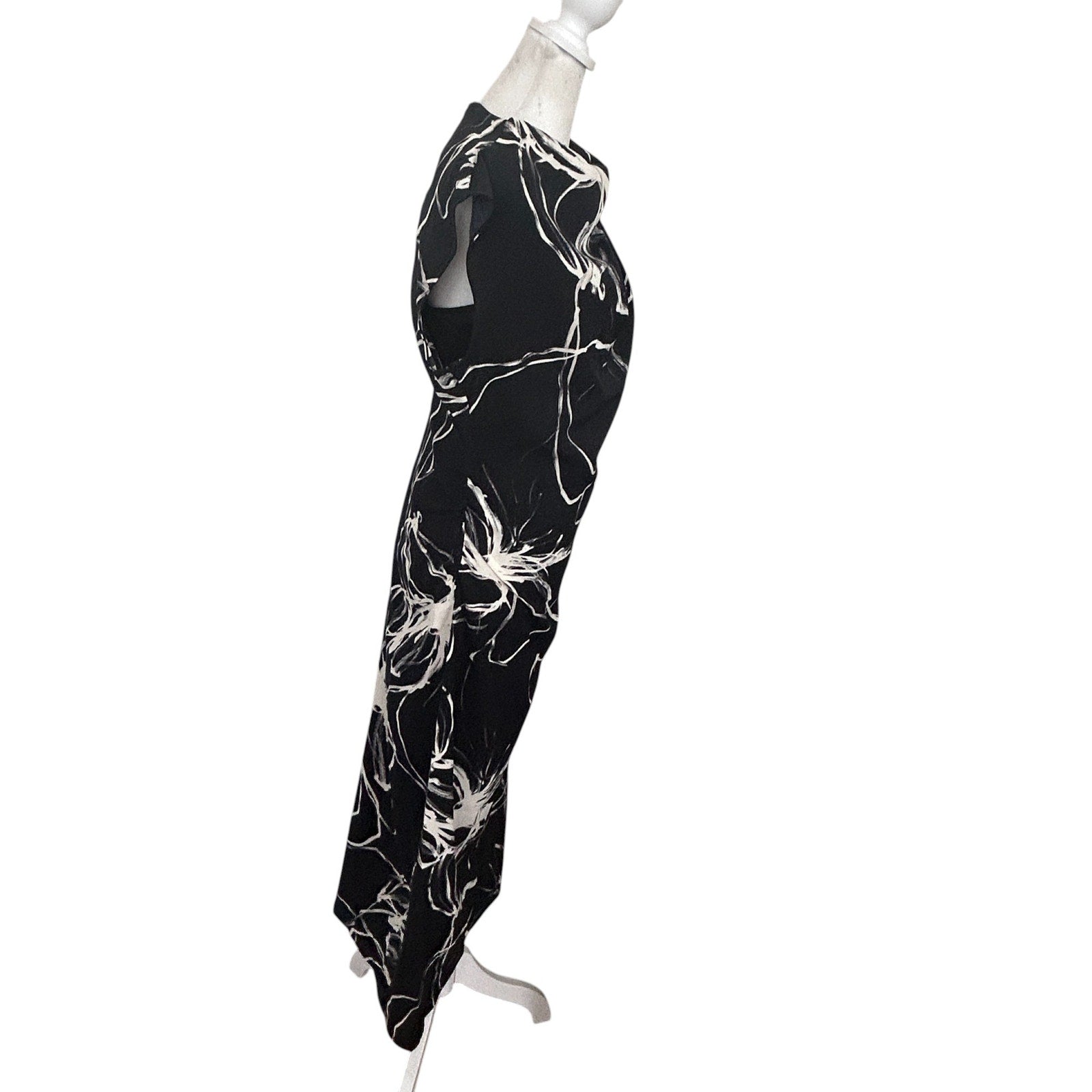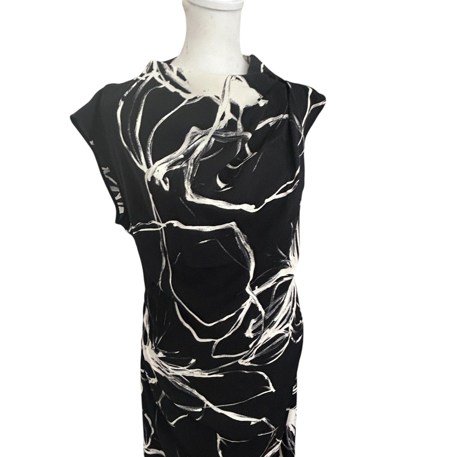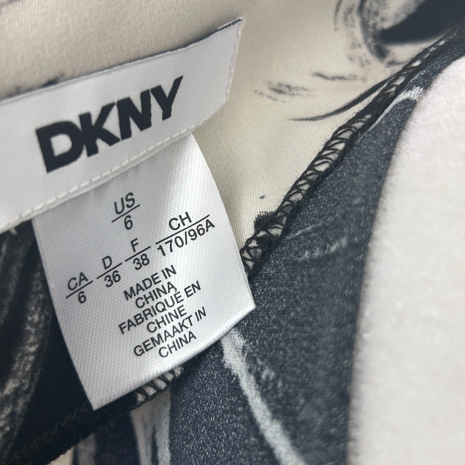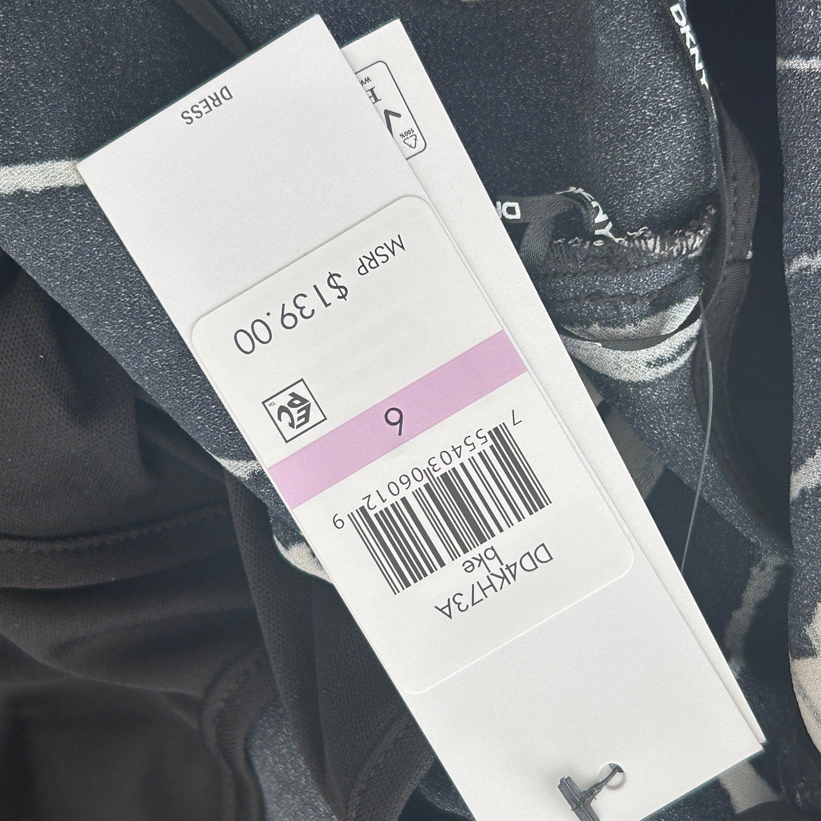DKNY Black and Ivory Printed Mock-Neck Cap Sleeve Midi Dress Womens Size 6 NEW