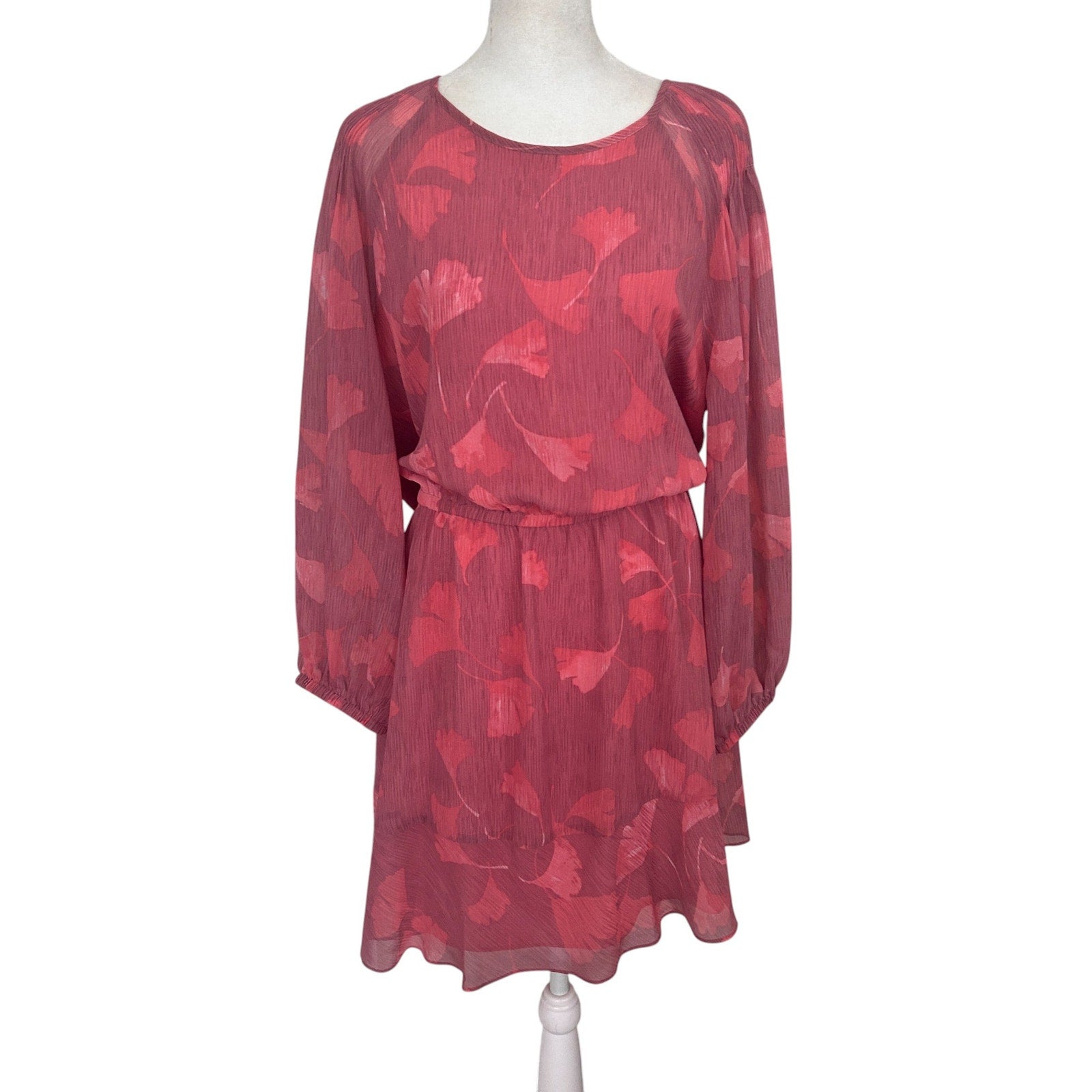 H Halton Pink Floral Long Sleeve Short Ruffled Dress Womens Size Large