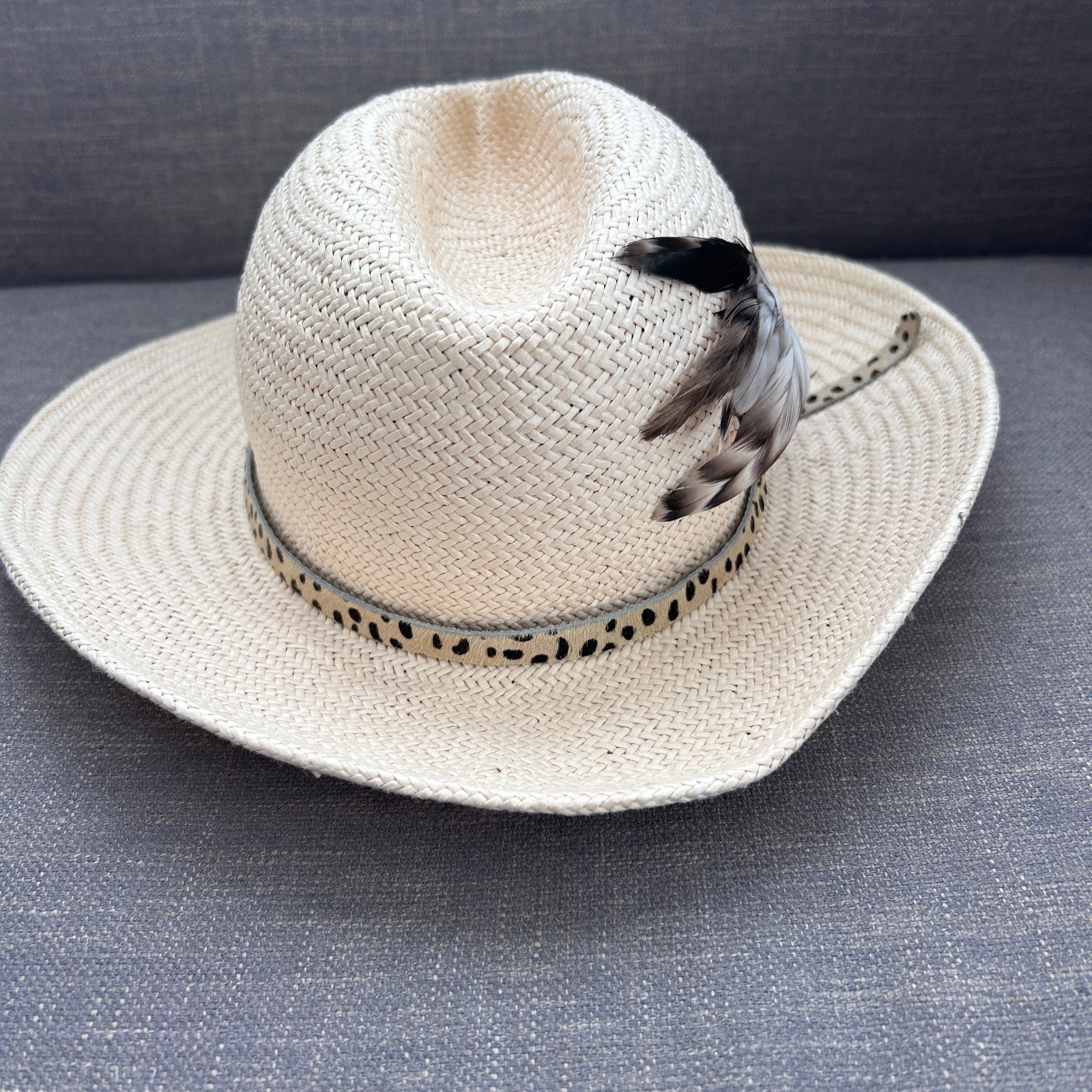 IIndia Hicks Hat Attack Tan Straw Hat With Animal Print Band and Feather