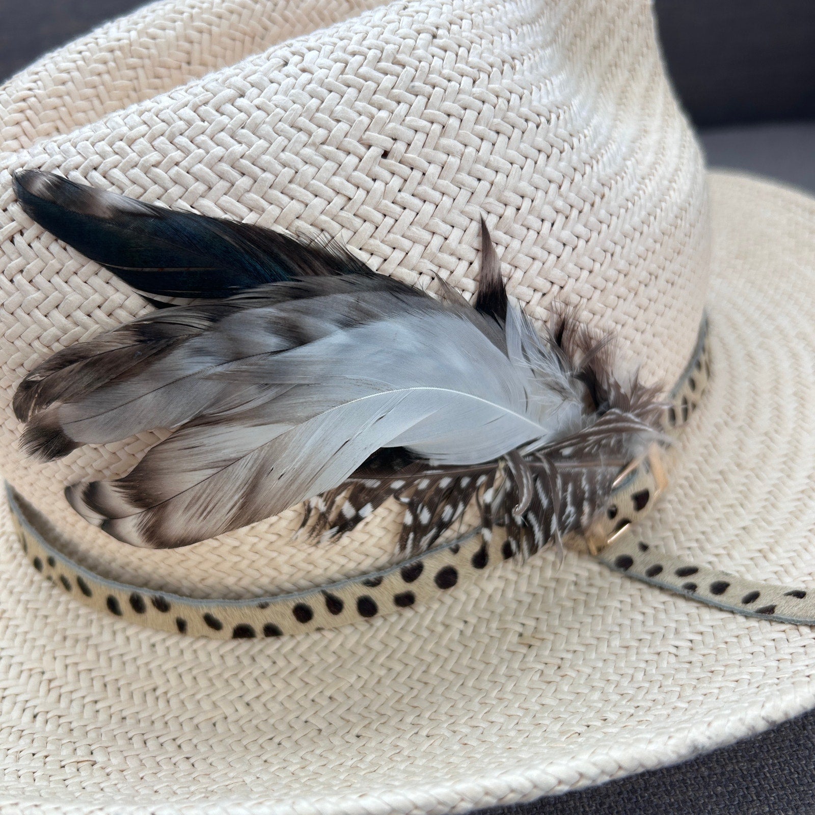 India Hicks Hat Attack Tan Straw Hat With Animal Print Band and Feather