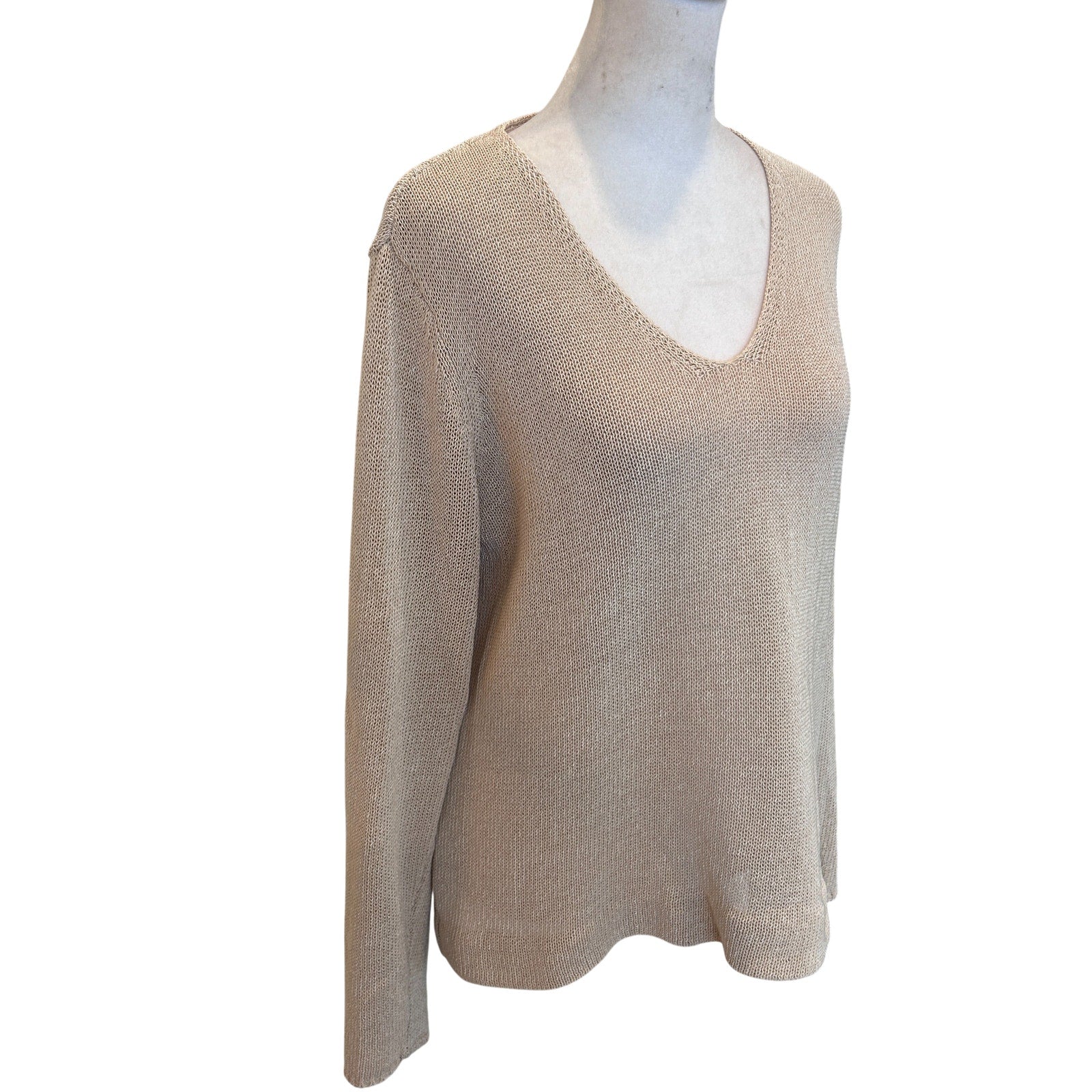J McGlaughlin Tan Beige Long Sleeve V-Neck Pullover Sweater Womens Size Large