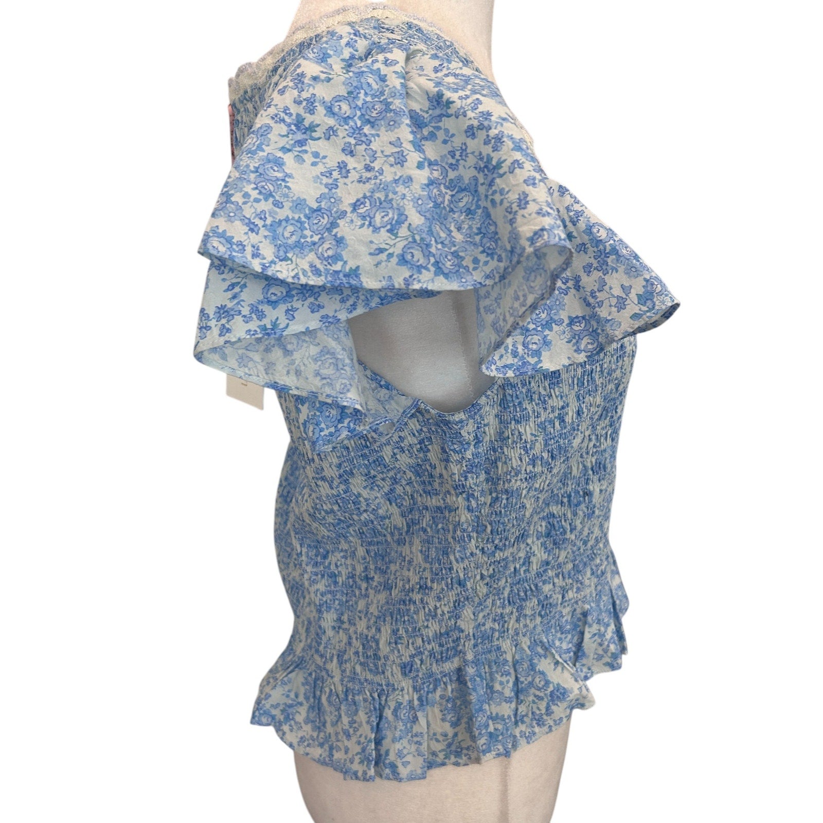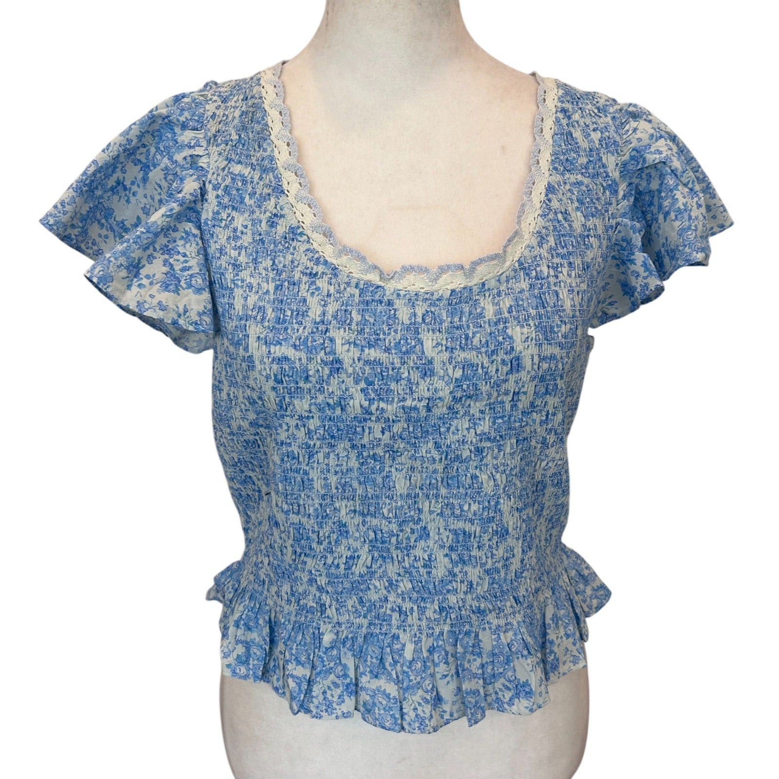 Love Shack Fancy NEW Spa Blue Milta Ruffled Top Womens Size Large