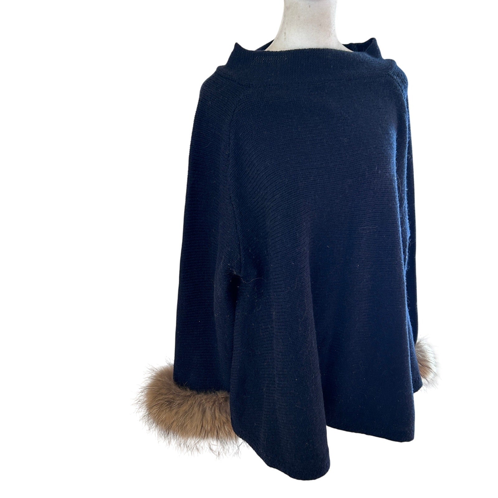 Muche et Muchette Navy Blue Turtleneck Sweater Raccoon Fur Cuffs Womens One Size