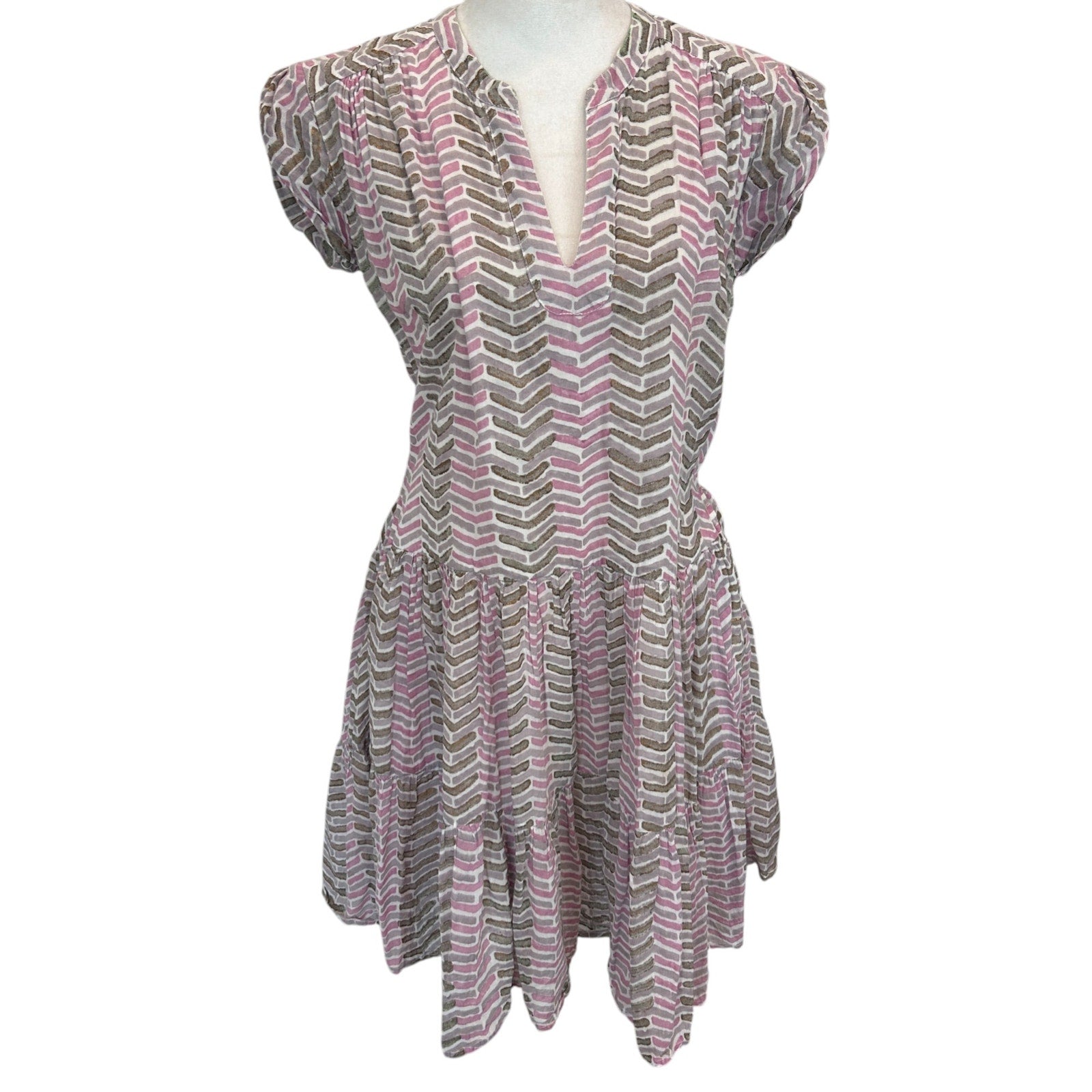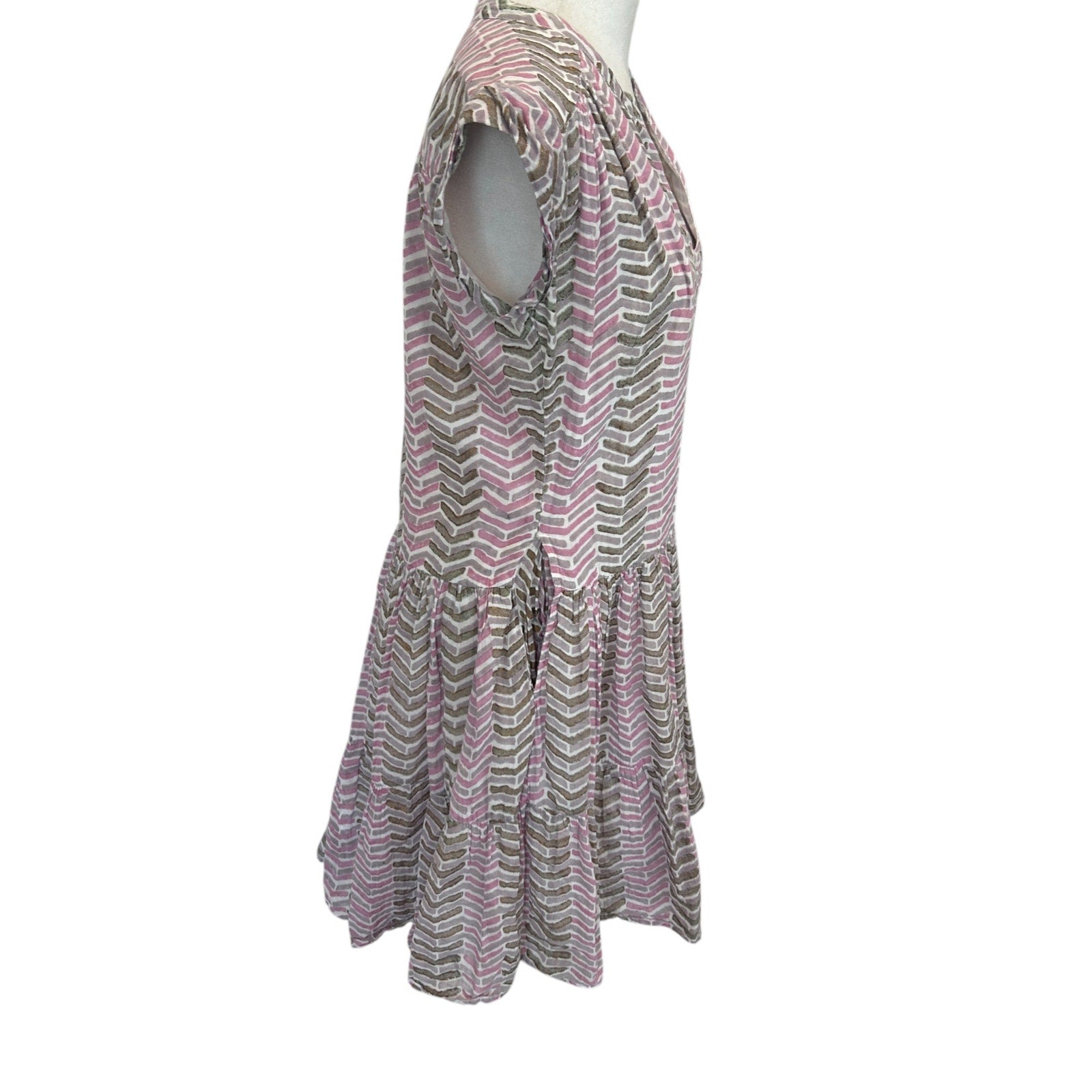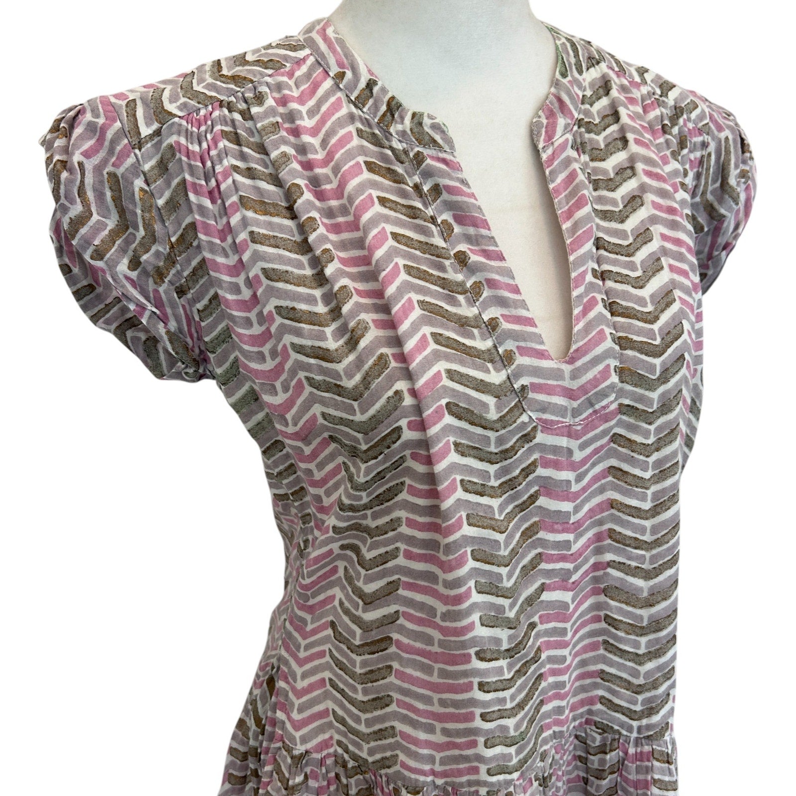 Oliphant Pink Purple V-Neck Short Sleeve Ruffled Dress Boho Womens Size XS