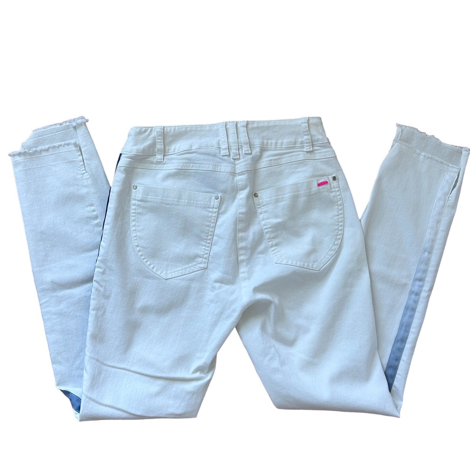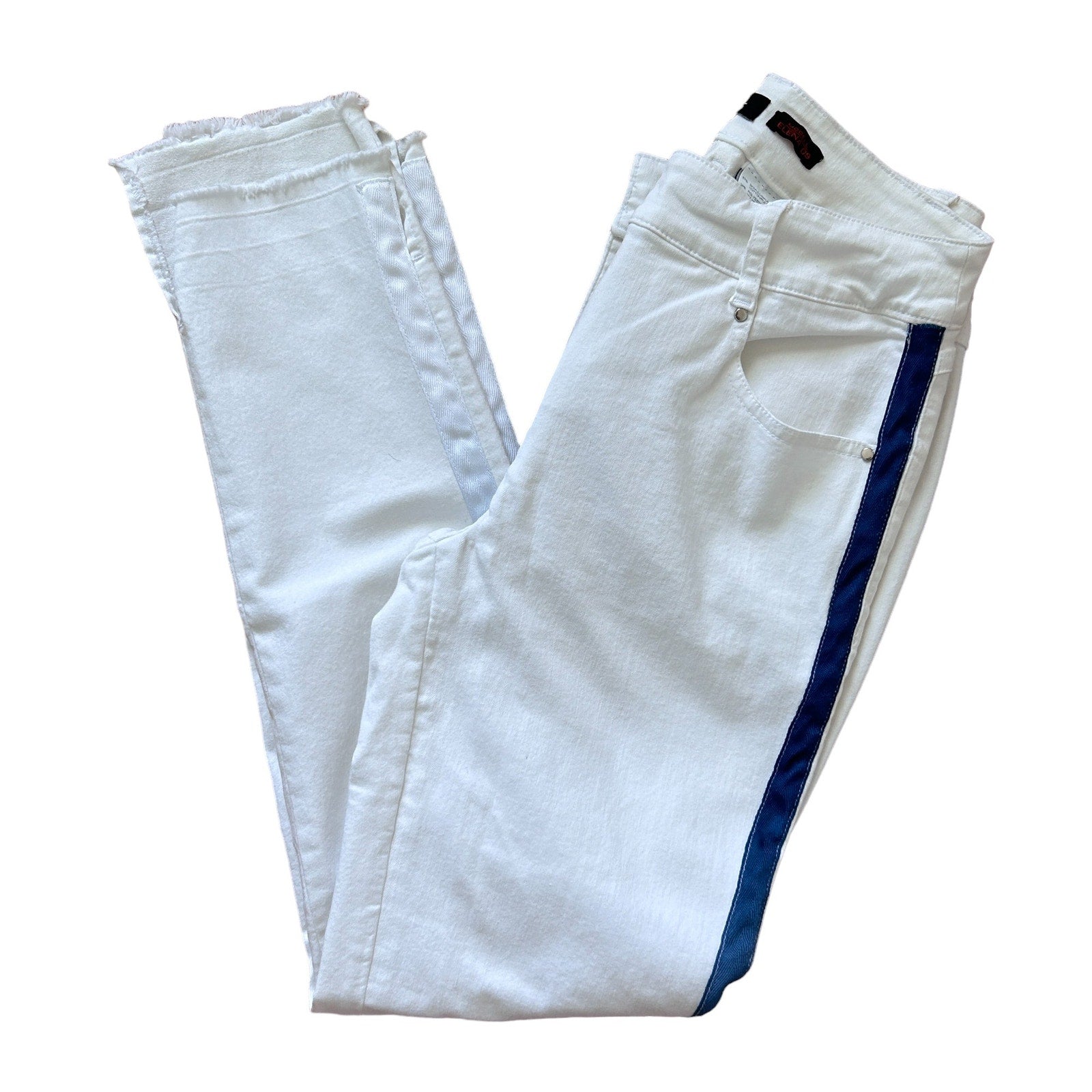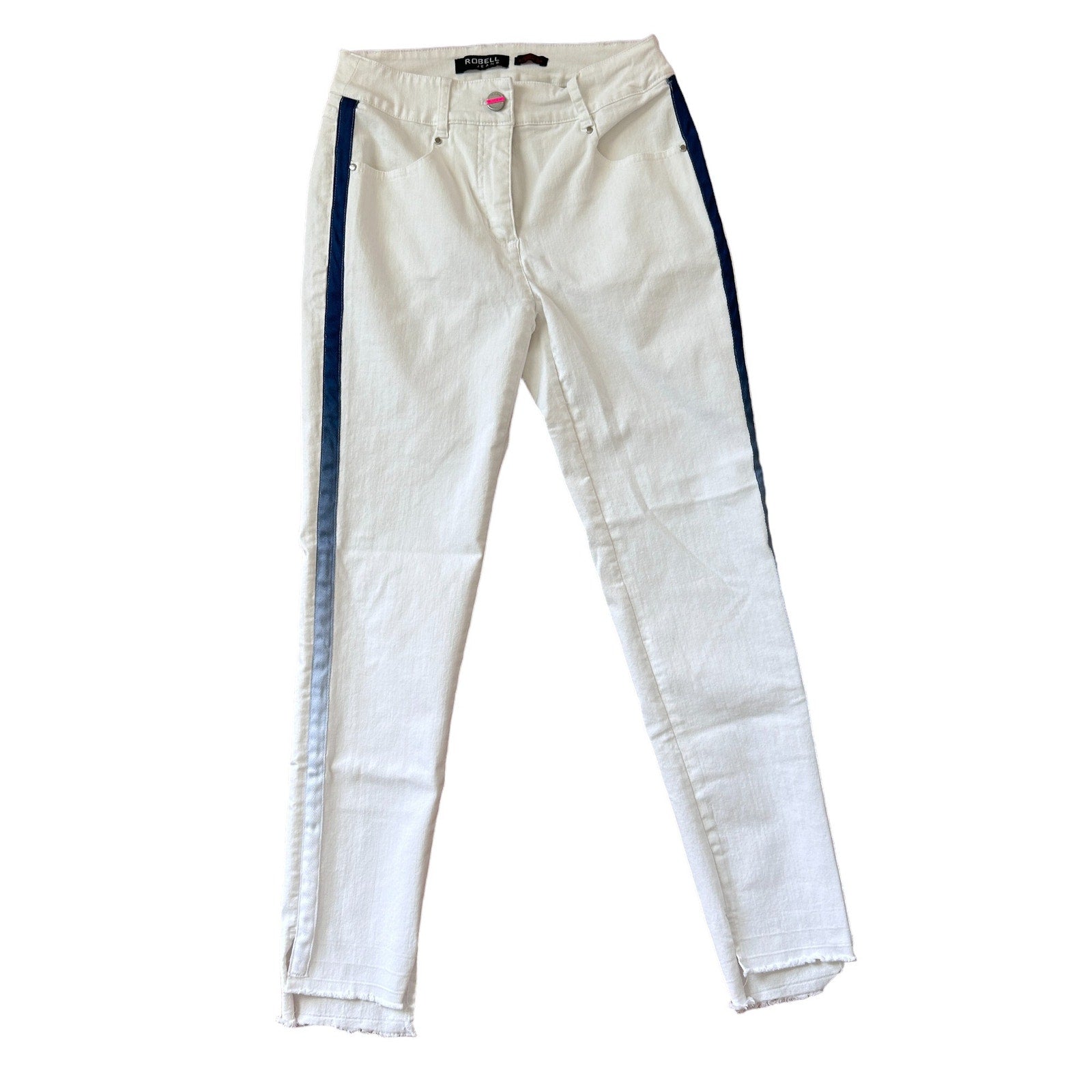 Robell Jeans Modell Elena 09 White Blue Side Stripe Raw Hem Skinny Womens Size 6