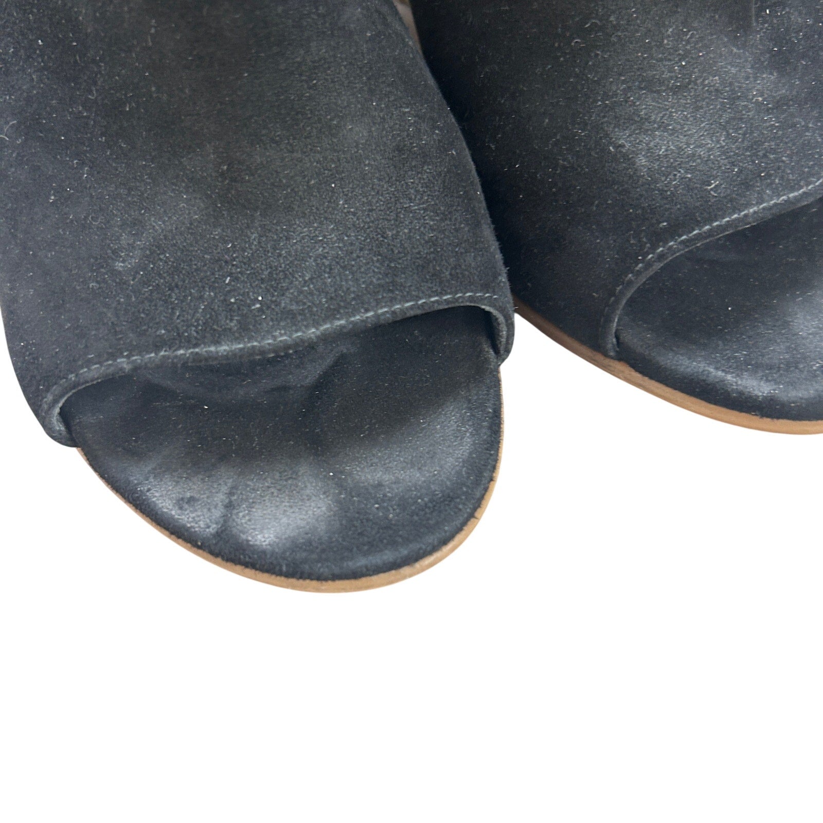 Stuart Weitzman Black Suede Cork Wedge Peep Toe Slingback Sandals Womens Size 9