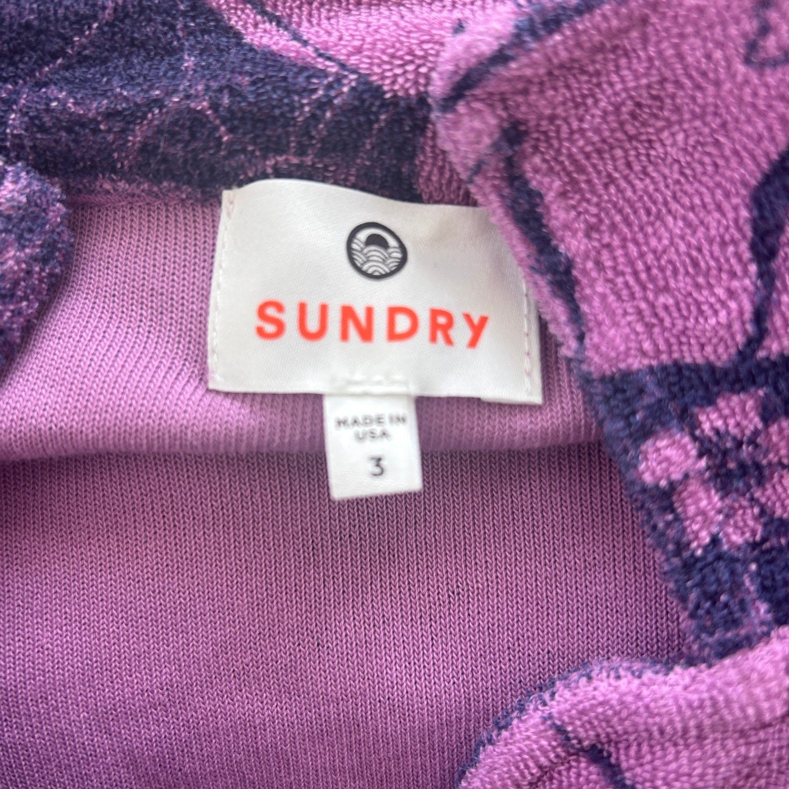 Sundry Purple, Blue Floral Terry Button Down Short Sleeve Top