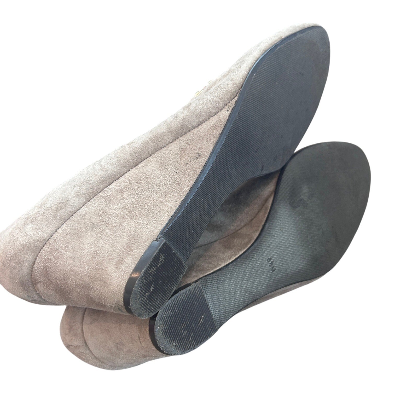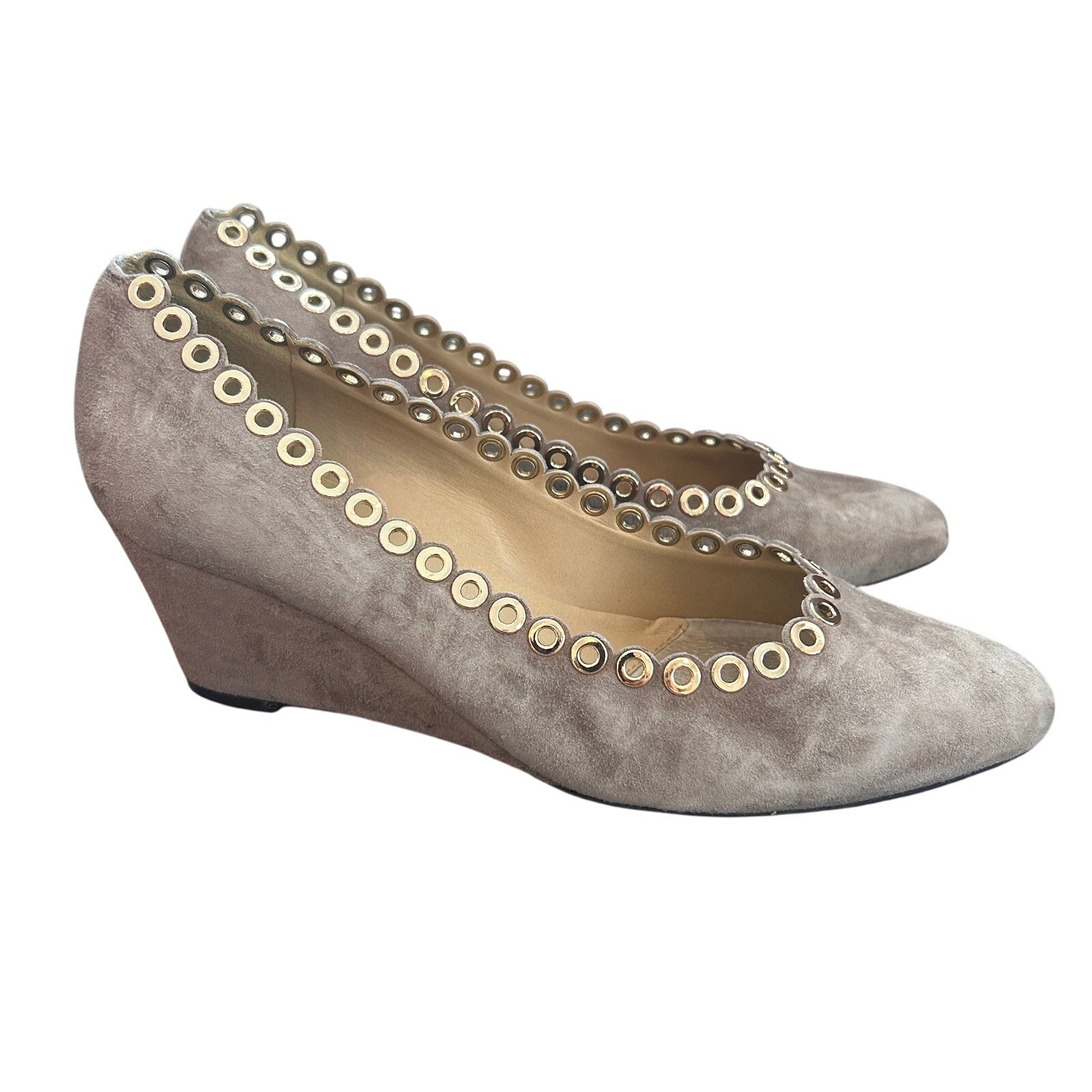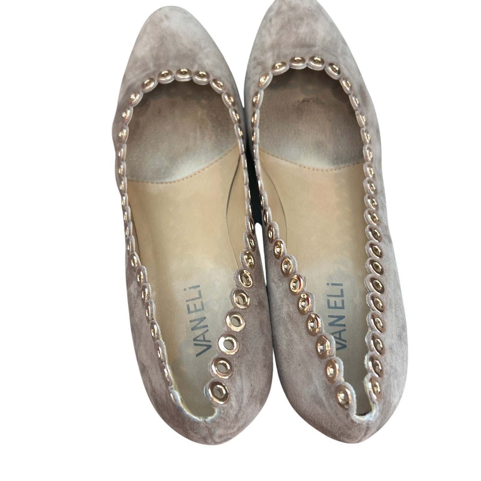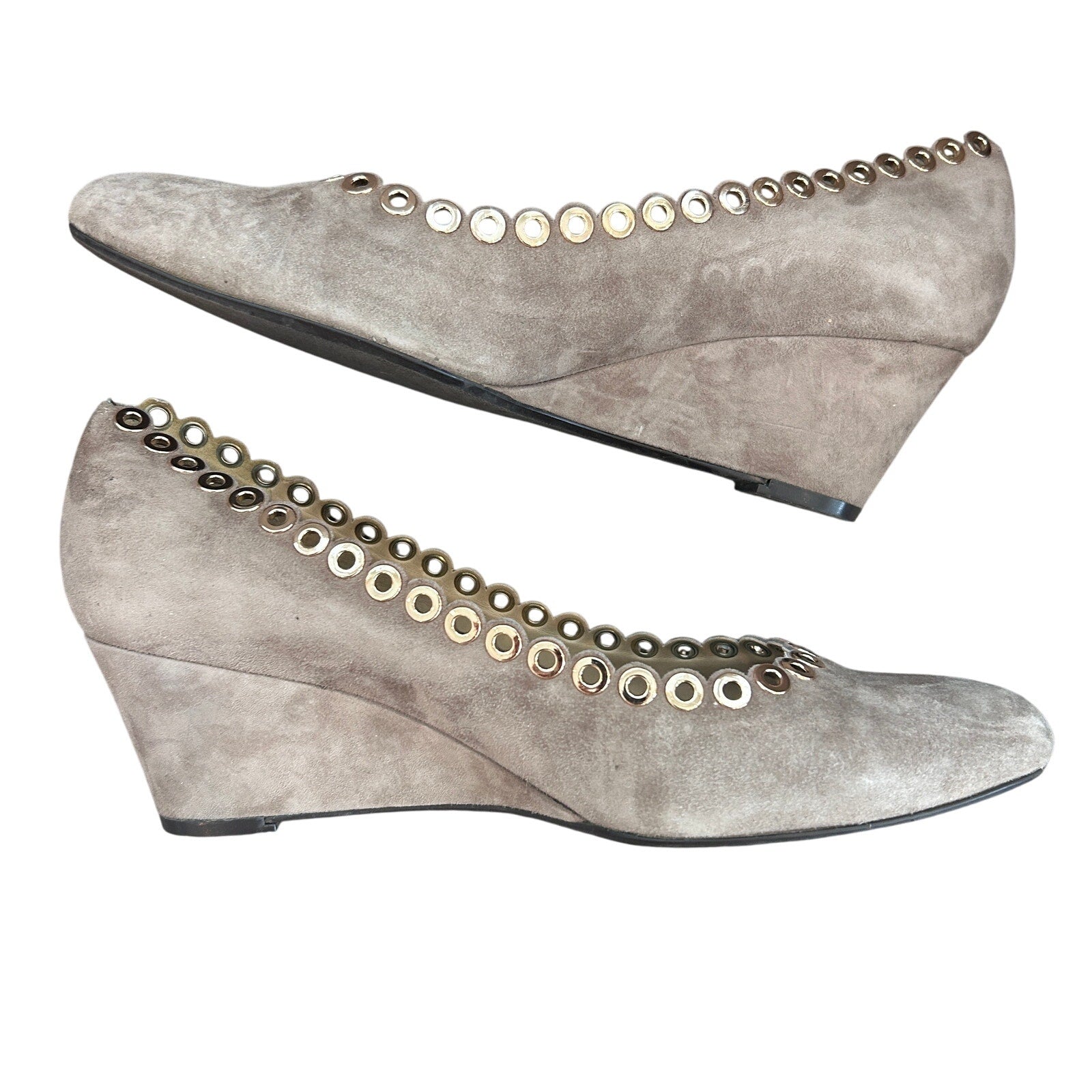 VANELi Deana Truffle Suede Brown Gold Metal Eyelet Trim Wedges Womens Size 8.5