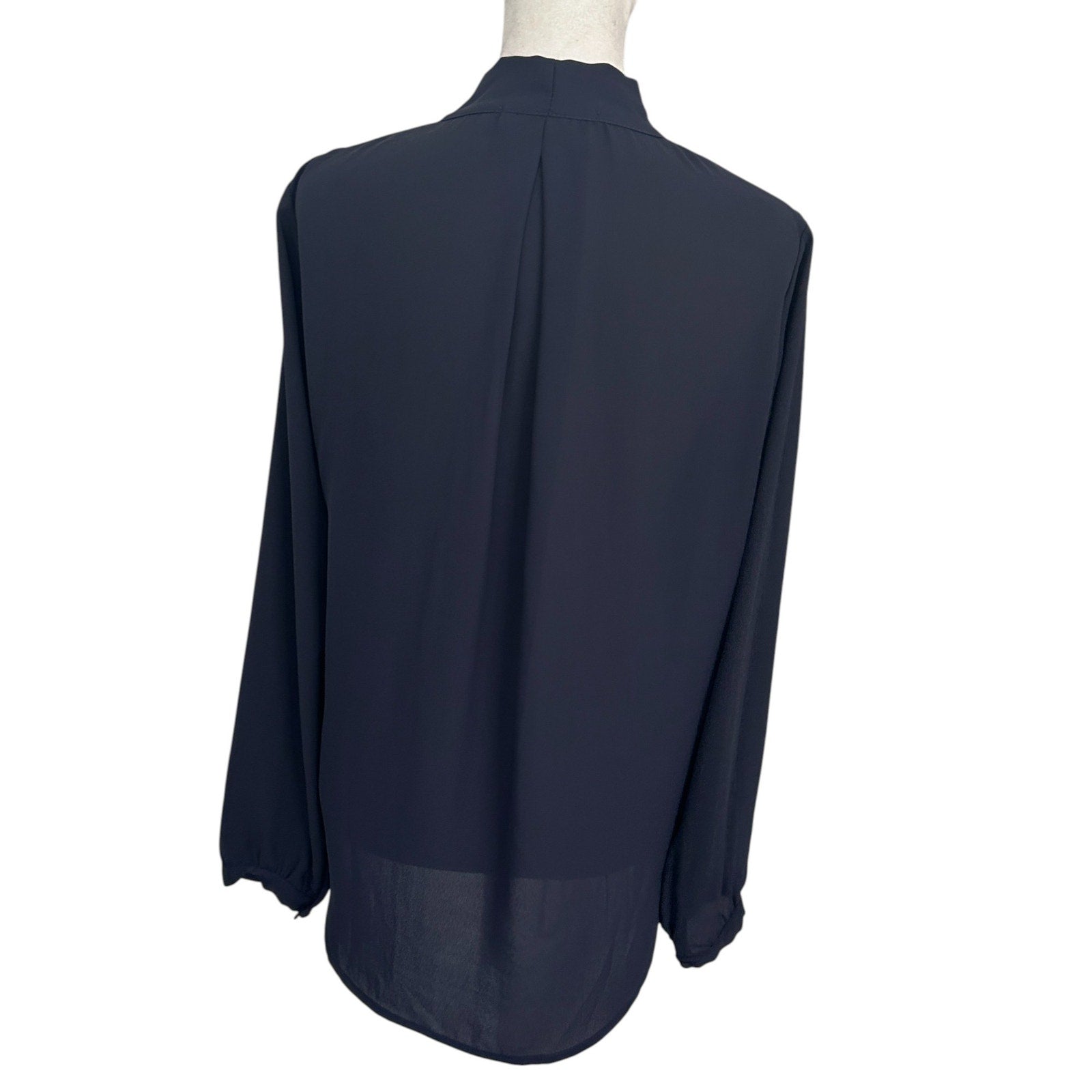 Veronica M. Navy Blue V-Neck Drape Front Long Blouse Top Womens Size Small