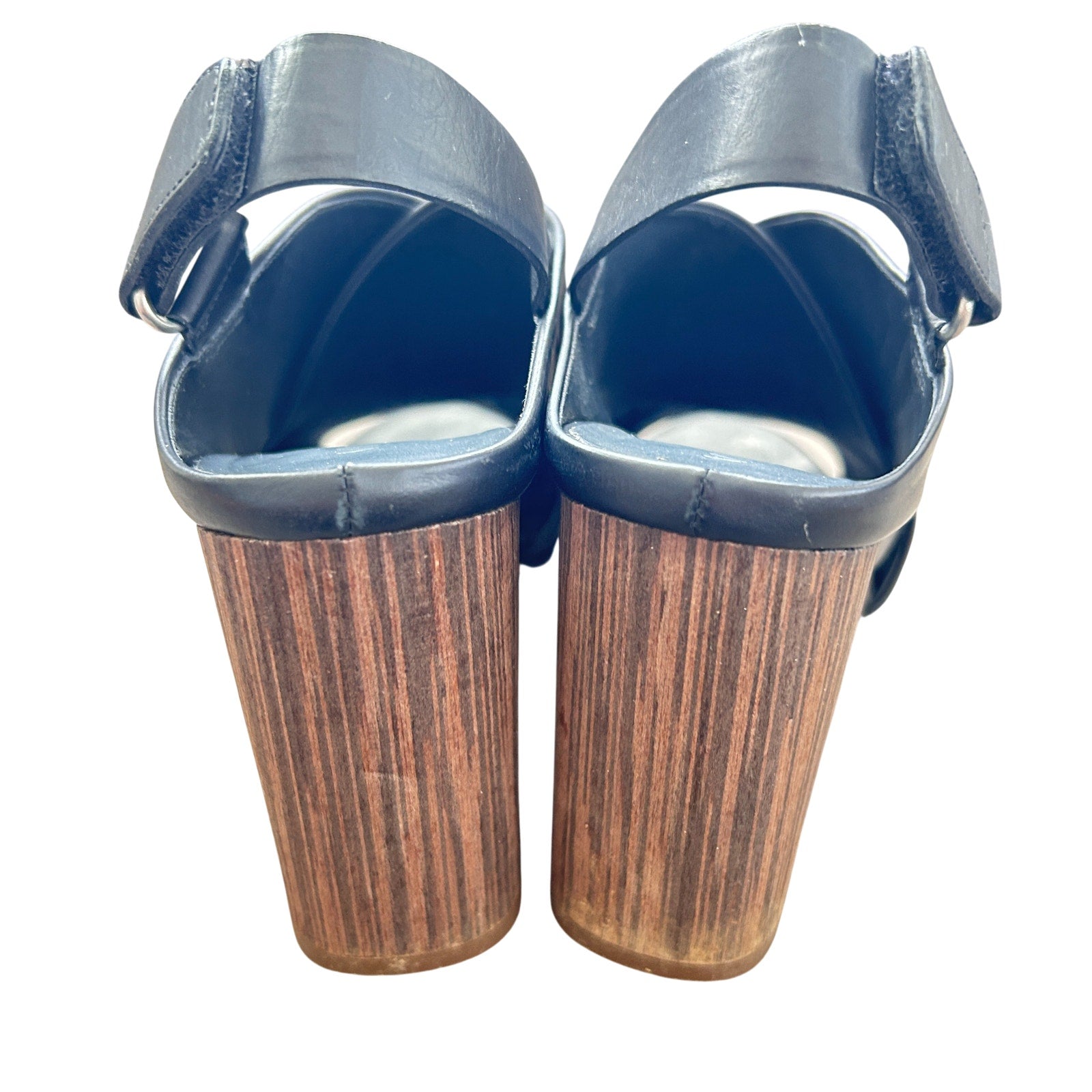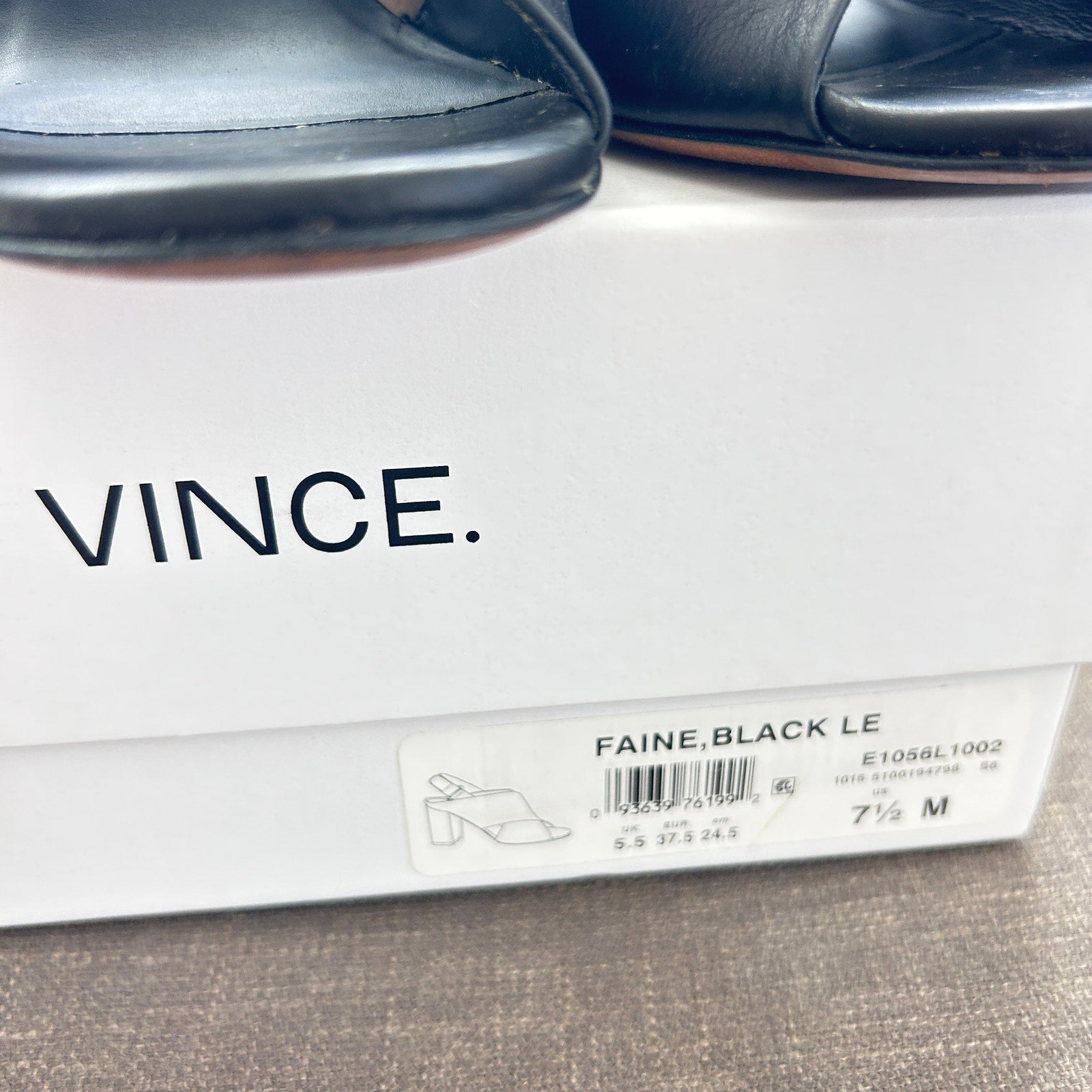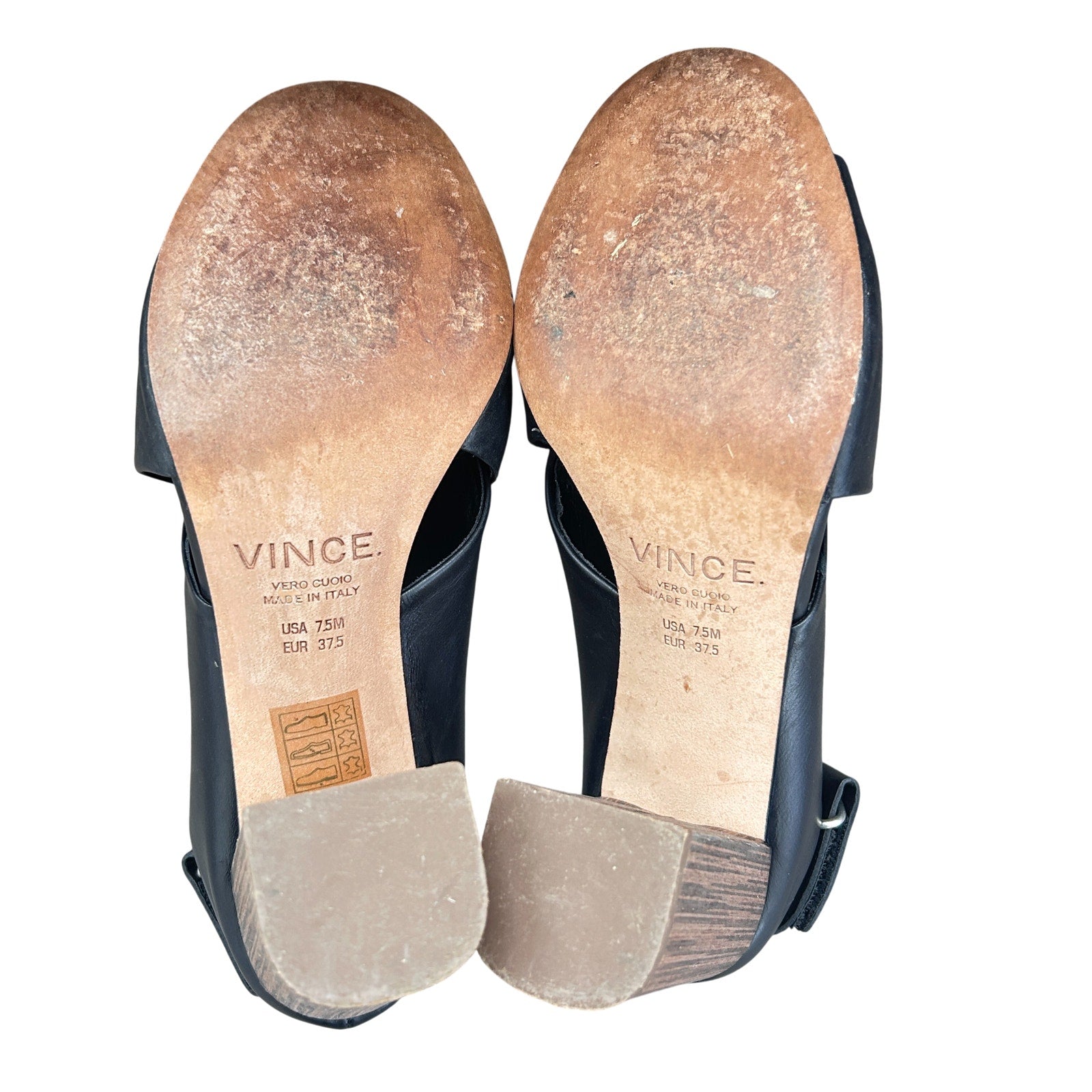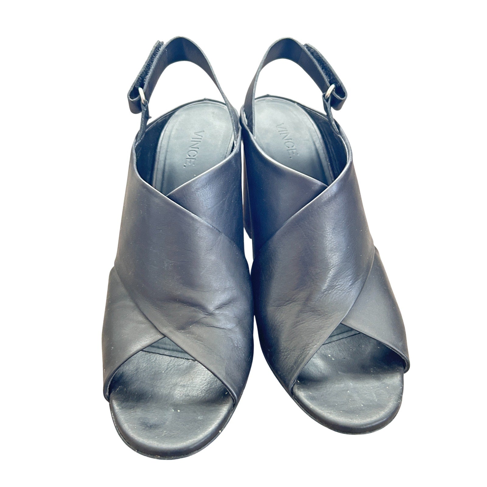 Vince Faine Black Leather Slingback Block Heel Sandal Shoes Womens Size 7.5