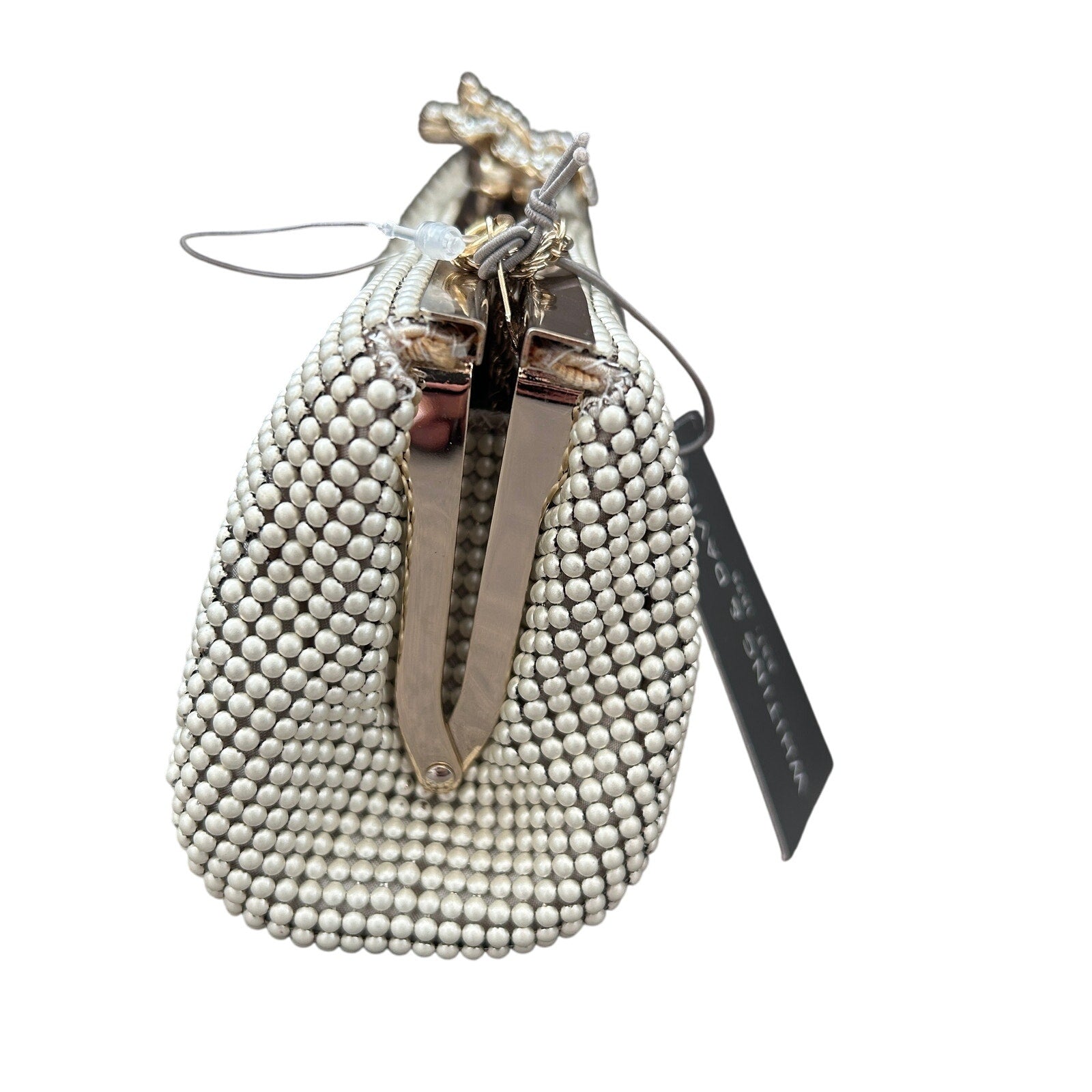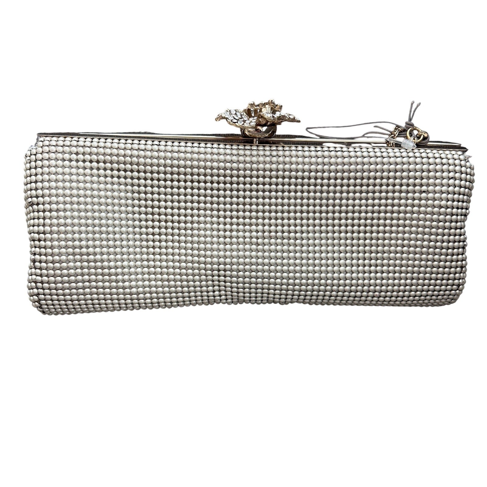 Whiting & Davis NWT Ivory and Gold Beaded Clutch With Chain Strap NEW