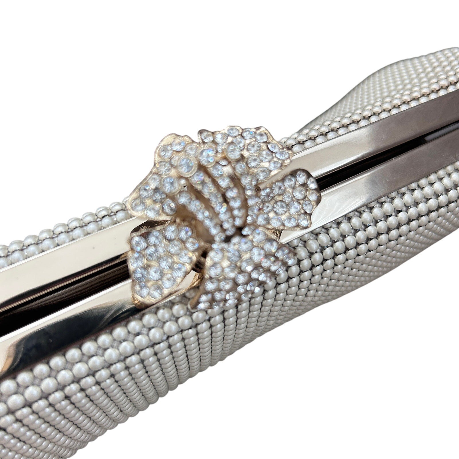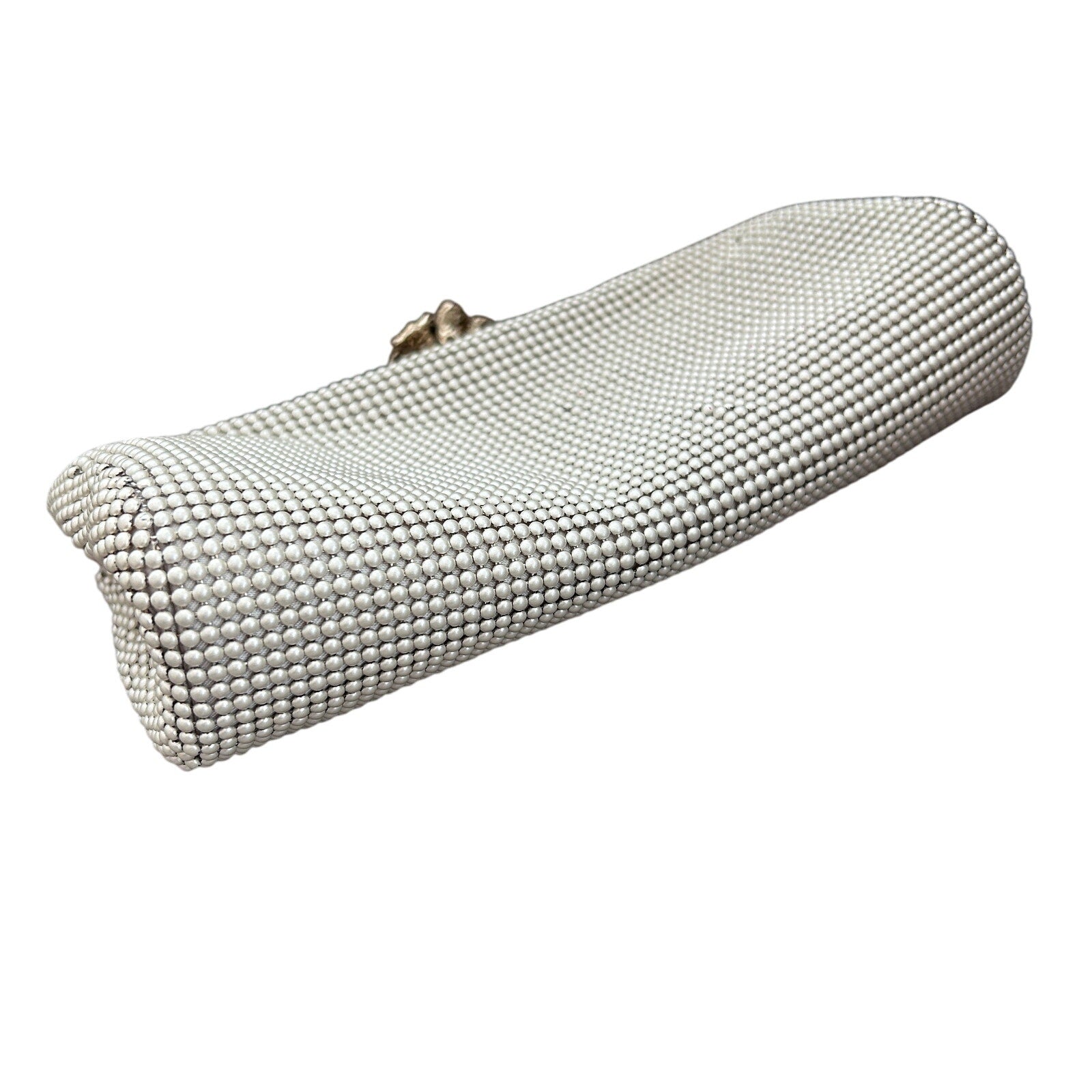 Whiting & Davis Ivory and Gold Beaded Clutch With Chain Strap